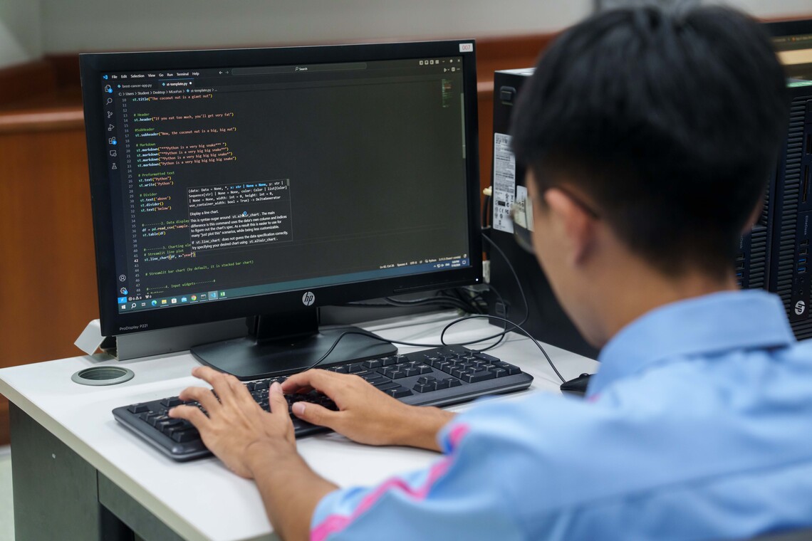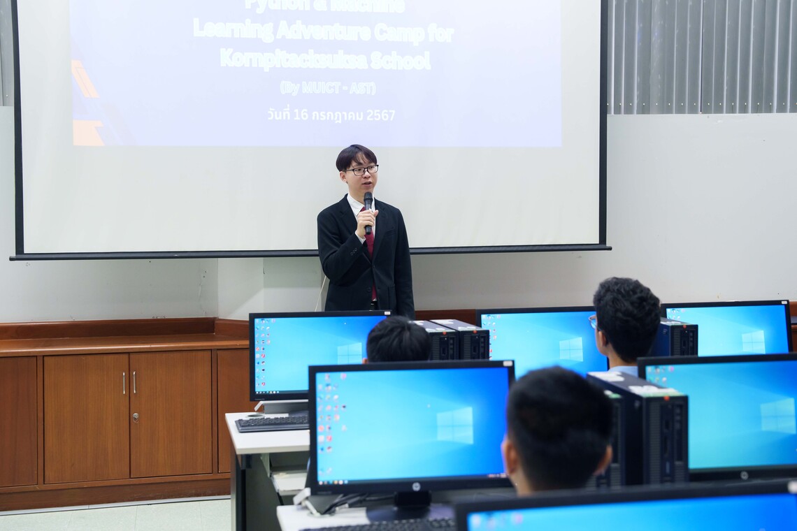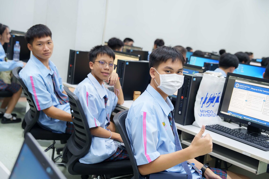 วันที่ 16 กรกฎาคม 2567 คณะเทคโนโลยีสารสนเทศและการสื่อสาร มหาวิทยาลัยมหิดล (ICT Mahidol) ร่วมกับโรงเรียนกรพิทักษ์ศึกษา จัดโครงการอบรม “เพิ่มขีดความสามารถด้าน ICT สำหรับนักเรียนโรงเรียนกรพิทักษ์ศึกษา” ให้แก่นักเรียนระดับชั้นมัธยมศึกษาตอนปลายจำนวน 81 คน โดยได้รับเกียรติจาก ดร. พิสิฐ ไพรวัฒนา ผู้ช่วยคณบดีฝ่ายสื่อสารองค์กรและเทคโนโลยีสื่อ กล่าวต้อนรับและเปิดการอบรม ณ ห้องปฏิบัติการคอมพิวเตอร์ IT106 ชั้น 1 คณะ ICT มหาวิทยาลัยมหิดล ศาลายา