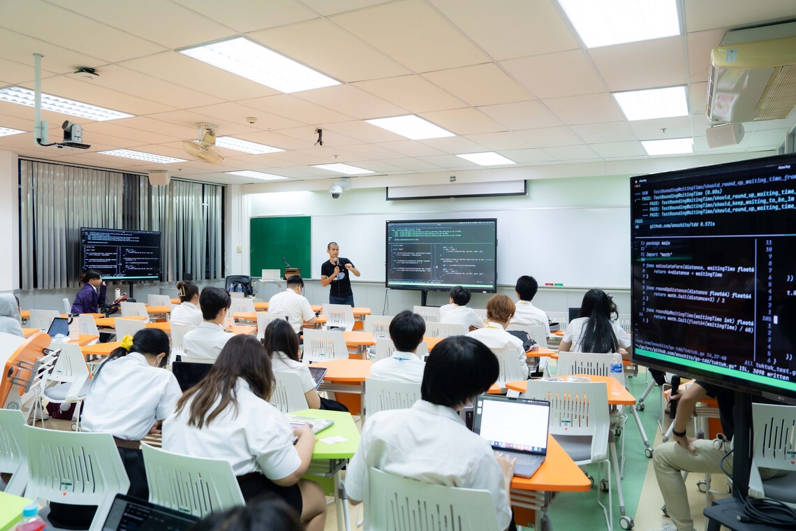วันที่ 30 ตุลาคม 2567 คณะเทคโนโลยีสารสนเทศและการสื่อสาร มหาวิทยาลัยมหิดล (ICT Mahidol) จัดกิจกรรมบรรยายพิเศษในหัวข้อ “ICT Mahidol x Arise: Test-Driven Development (TDD) with Go” โดยได้รับเกียรติจาก ผศ. ดร.ชัยยงค์ รักขิตเวชสกุล อาจารย์ประจำกลุ่มวิชาวิทยาการคอมพิวเตอร์ และกลุ่มวิจัยวิศวกรรมซอฟต์แวร์และการวิเคราะห์ธุรกิจ (Software Engineering and Business Analytics Research Clusters (SEBA)) เป็นผู้กล่าวเปิดกิจกรรม พร้อมด้วยทีมงานจากบริษัท อะไรส์ บาย อินฟินิธัส จำกัด ได้แก่ คุณพลัฏฐ์ อัญชลีชไมกร Principal Go Developer, Director คุณอนุชิต ประเสริฐสังข์ Principal Technology Consultant และ คุณอภัยชนม์ พันธุ์โอภาส Technical Coach ร่วมเป็นวิทยากรถ่ายทอดองค์ความรู้เกี่ยวกับกระบวน Test-Driven Development (TDD) ซึ่งเป็นหลักการการพัฒนาโปรแกรม ที่เน้นการเขียนโค้ดทดสอบก่อนเขียนโค้ดการทำงานหลักของซอฟต์แวร์ โดยใช้ภาษา Go ซึ่งเป็นภาษาคอมพิวเตอร์ที่มีระบบทดสอบในตัว โดยมีนักศึกษาหลักสูตรวิทยาศาสตรบัณฑิต สาขาวิชาเทคโนโลยีสารสนเทศและการสื่อสาร (ICT หลักสูตรนานาชาติ) และสาขาวิชาวิทยาการและเทคโนโลยีดิจิทัล (DST หลักสูตรไทย) เข้าร่วมกิจกรรม 37 คน ณ ห้อง IT331 ชั้น 3 คณะ ICT มหาวิทยาลัยมหิดล ศาลายา
