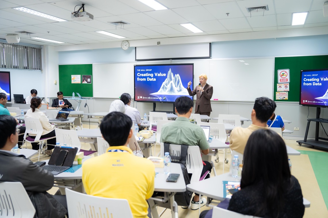 วันที่ 27 พฤศจิกายน 2567 คณะเทคโนโลยีสารสนเทศและการสื่อสาร มหาวิทยาลัยมหิดล (ICT Mahidol) จัดโครงการสัมมนาวิชาการ หัวข้อ “How to create value from data and software practices by TMG Tech & Data team” โดยได้รับเกียรติจาก ผศ. ดร.ทิพาจินต์ ไทยพิสุทธิกุล ผู้ช่วยคณบดีฝ่ายบริการวิชาการและถ่ายทอดเทคโนโลยี เป็นผู้กล่าวเปิดโครงการฯ พร้อมด้วย คุณโทนี่ วิลเลี่ยม กองสมบัติ Vice President – Marketing Innovation & Data Intelligence, The Mall Group เป็นผู้ถ่ายทอดองค์ความรู้เกี่ยวกับวิธีการใช้ข้อมูลและแนวทางการพัฒนาซอฟต์แวร์อย่างมีประสิทธิภาพ เพื่อสร้างคุณค่าให้กับองค์กร ให้แก่คณาจารย์ บุคลากร นักศึกษามหาวิทยาลัยมหิดล และผู้สนใจ จำนวน 35 คน ณ ห้อง IT302 ชั้น 3 คณะ ICT มหาวิทยาลัยมหิดล ศาลายา