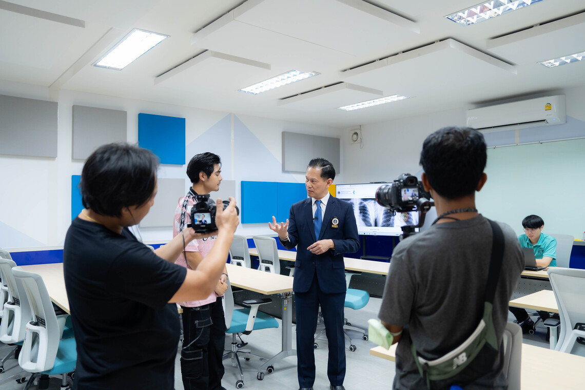 วันที่ 11 ธันวาคม 2567 ดร. พัฒนศักดิ์ มงคลวัฒน์ คณบดี คณะเทคโนโลยีสารสนเทศและการสื่อสาร มหาวิทยาลัยมหิดล (ICT Mahidol) และ อาจารย์ผกาพร เพ็งศาสตร์ รองคณบดีฝ่ายโครงสร้างพื้นฐานและเทคโนโลยี ร่วมให้การต้อนรับทีมงานจากรายการ “Go2U ลุยทุกU รู้ให้จริง” ในโอกาสเข้าสัมภาษณ์และถ่ายทำรายการด้านการแนะแนวการศึกษาต่อ ณ สถาบันปัญญาประดิษฐ์มหิดล (MU AI Center) คณะ ICT มหาวิทยาลัยมหิดล ศาลายา