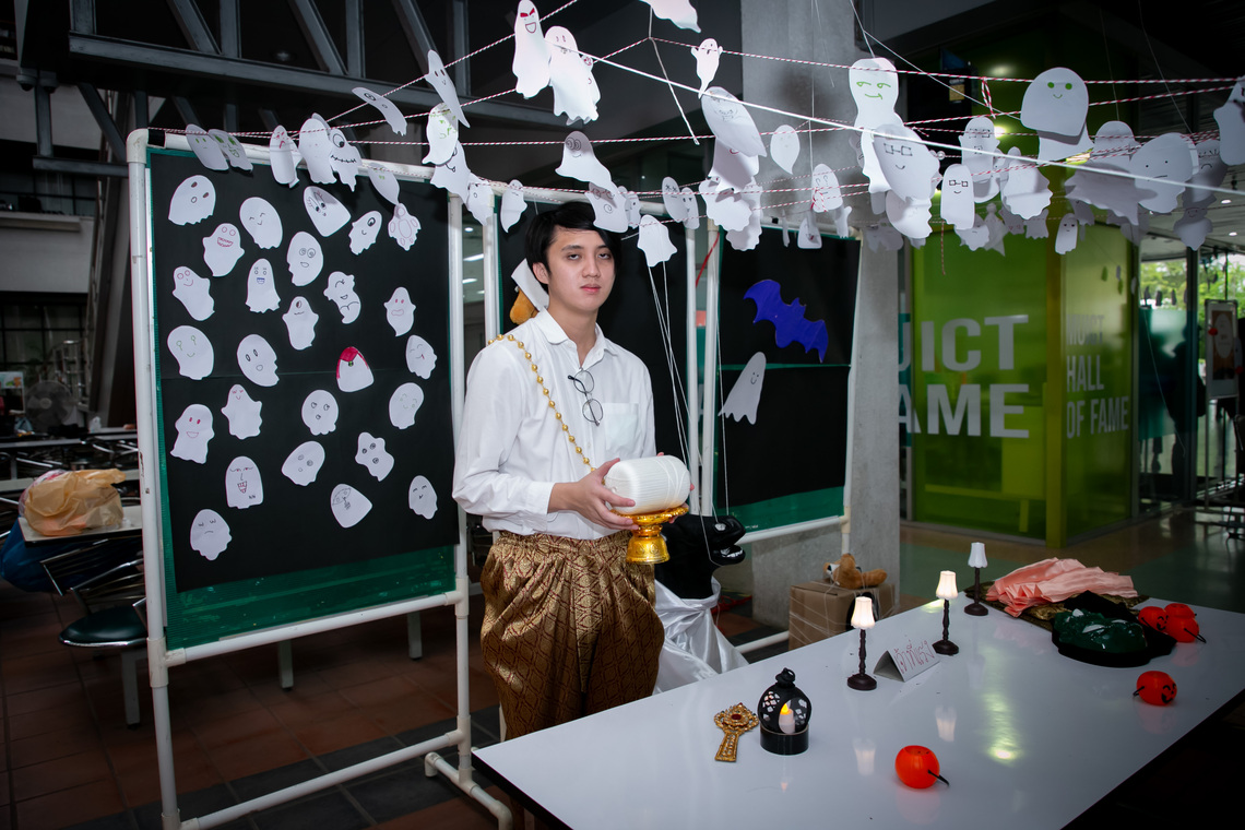 วันที่ 31 ตุลาคม 2566 นักศึกษาทุนกิจกรรม ร่วมกับ สำนักงานบริหารการศึกษา คณะเทคโนโลยีสารสนเทศและการสื่อสาร มหาวิทยาลัยมหิดล (ICT Mahidol) จัดกิจกรรมวันฮัลโลวีน “ICTxDST Halloween 2023” ให้กับนักศึกษาหลักสูตรวิทยาศาสตรบัณฑิต สาขาวิชาเทคโนโลยีสารสนเทศและการสื่อสาร (ICT หลักสูตรนานาชาติ) และ สาขาวิชาวิทยาการและเทคโนโลยีดิจิทัล (DST หลักสูตรไทย) ณ ลาน Innovative Space คณะ ICT มหาวิทยาลัยมหิดล ศาลายา