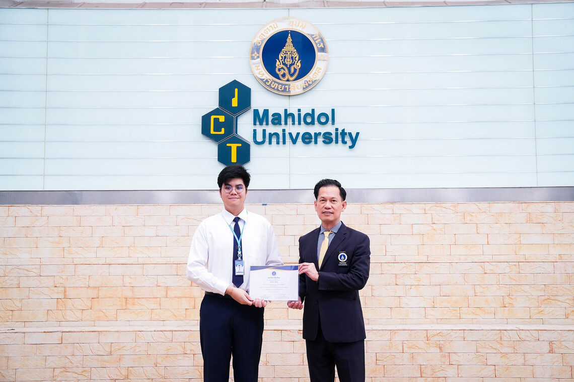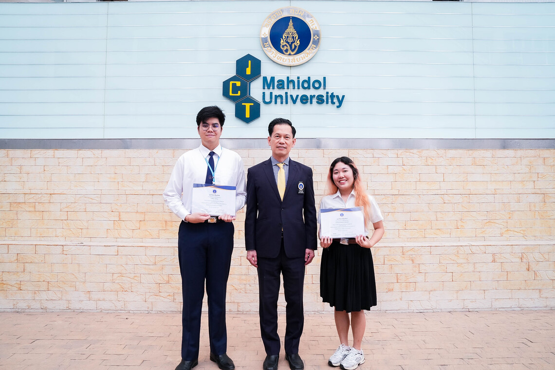 คณะเทคโนโลยีสารสนเทศและการสื่อสาร มหาวิทยาลัยมหิดล (ICT Mahidol) ขอแสดงความยินดีกับ นายพีรกร นิมิตกุล และ นางสาวอรรจน์ชญาณ์ ศรีมงคลธนา นักศึกษาชั้นปีที่ 4 หลักสูตรวิทยาศาสตรบัณฑิต สาขาวิชาเทคโนโลยีสารสนเทศและการสื่อสาร (ICT หลักสูตรนานาชาติ) ในโอกาสได้รับการคัดเลือกเพื่อรับรางวัลพระราชทาน “ระดับสถาบัน” ประจำปีการศึกษา 2565 และ 2566 ซึ่งประกาศผลเมื่อวันที่ 30 มกราคม 2567 ที่ผ่านมา