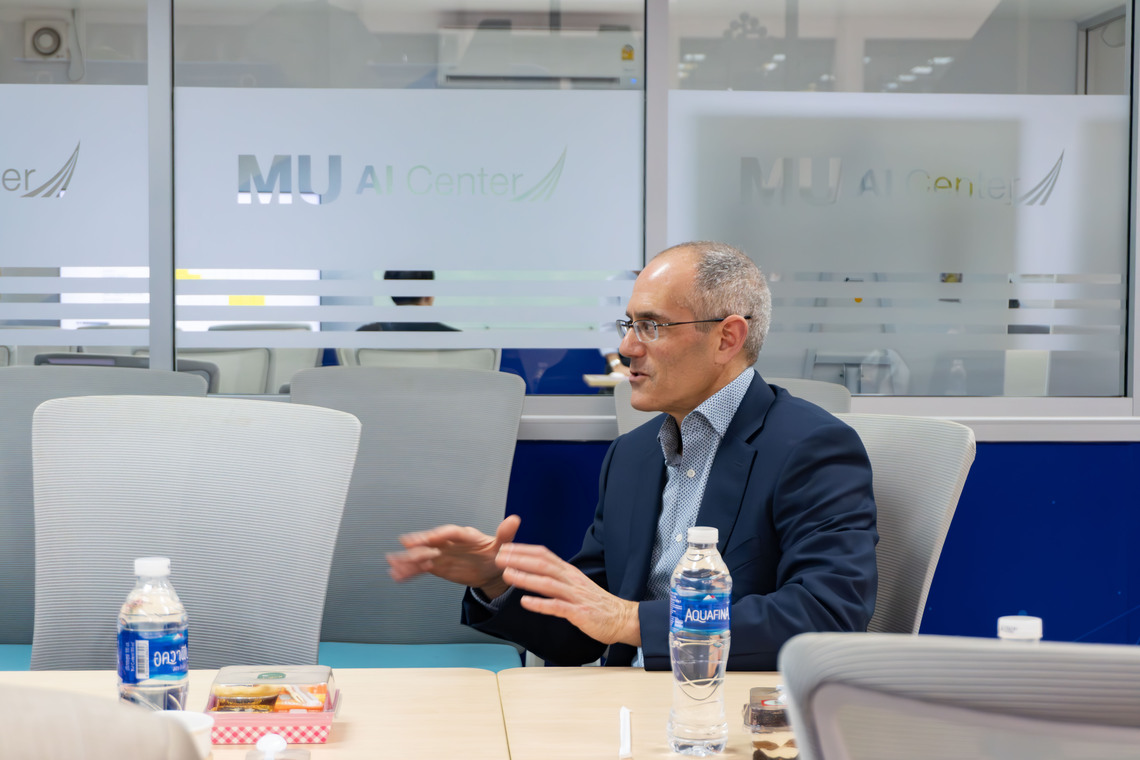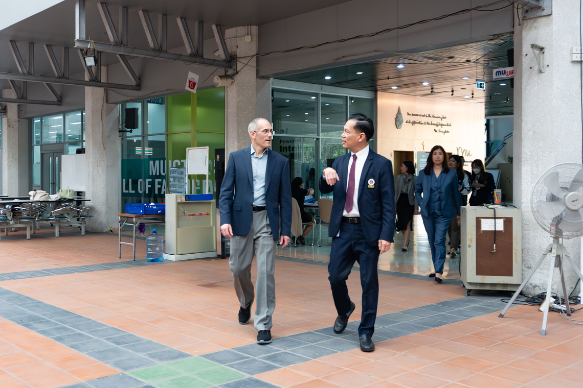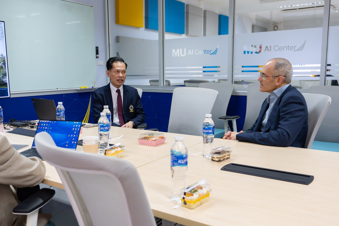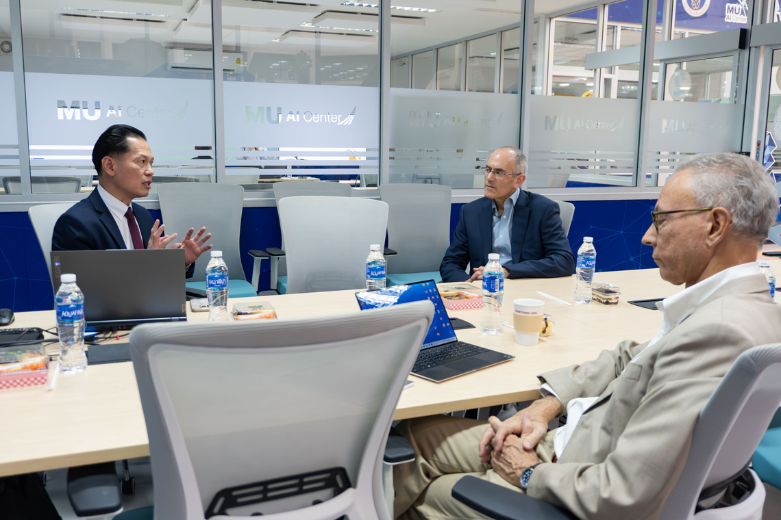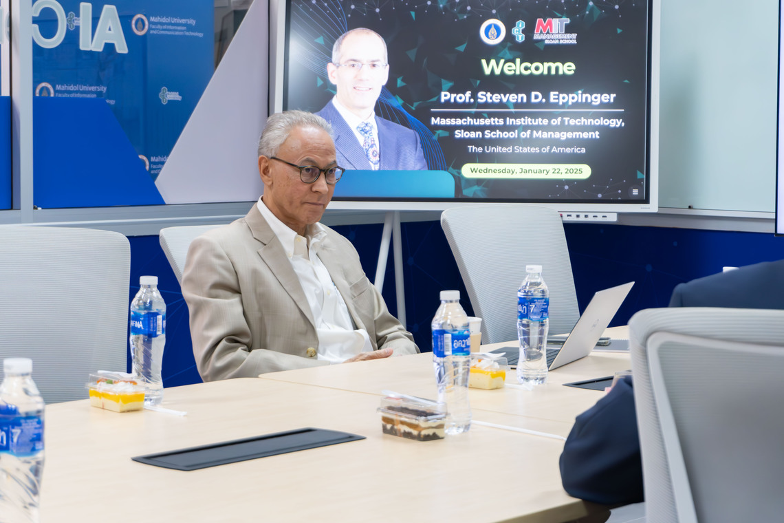 วันที่ 22 มกราคม 2568 ดร. พัฒนศักดิ์ มงคลวัฒน์ คณบดี คณะเทคโนโลยีสารสนเทศและการสื่อสาร มหาวิทยาลัยมหิดล (ICT Mahidol) พร้อมด้วย Professor Dr. Peter Haddawy, Global Talent Professor คณะ ICT ร่วมให้การต้อนรับ รองศาสตราจารย์ ดร. วิชิตา รักธรรม รองอธิการบดีฝ่ายสื่อสารองค์กรและภาพลักษณ์ และ Dr. Steven D. Eppinger, General Motors Leaders for Global Operations Professor of Management and Professor of Management Science and Innovation, MIT Sloan School of Management ประเทศสหรัฐอเมริกา ในโอกาสเข้าเยี่ยมชมห้องปฏิบัติการ IoT (IoT Lab) ชั้น 1 และ สถาบันปัญญาประดิษฐ์มหิดล (MU AI Center) พร้อมหารือความร่วมมือด้านการวิจัย และ หารือเกี่ยวกับศูนย์รวมเทคโนโลยีดิจิทัลอัจฉริยะเพื่อสร้างเศรษฐกิจการเรียนรู้ นวัตกรรม บูรณาการ ปัญญาประดิษฐ์ เพื่อการแพทย์ (Intelligent Digital Hub in Medicine: IDHM) ณ ห้องประชุม A1 ชั้น 1 คณะ ICT มหาวิทยาลัยมหิดล ศาลายา