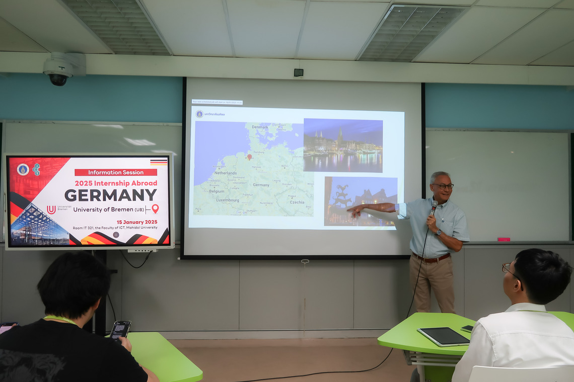 - กิจกรรม “Information Session for 2025 Internships Abroad, Germany: Round 1” ซึ่งเป็นการแนะนำข้อมูลโครงการแลกเปลี่ยน ณ University of Bremen สหพันธ์สาธารณรัฐเยอรมนี โดยได้รับเกียรติจาก Professor Dr. Peter Haddawy, Global Talent Professor คณะ ICT เป็นผู้แนะนำข้อมูลโครงการ