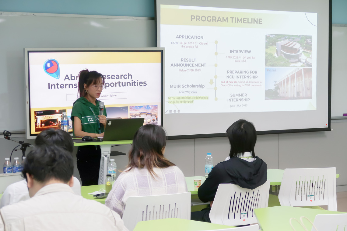 - กิจกรรม “Information Session for 2025 Internships Abroad, Taiwan: Round 1 ซึ่งเป็นการแนะนำข้อมูลโครงการแลกเปลี่ยน ณ National Central University (NCU) สาธารณรัฐจีน (ไต้หวัน) โดยได้รับเกียรติจาก ผศ. ดร.ทิพาจินต์ ไทยพิสุทธิกุล ผู้ช่วยคณบดีฝ่ายบริการวิชาการและถ่ายทอดเทคโนโลยี เป็นผู้แนะนำข้อมูลโครงการฯ
