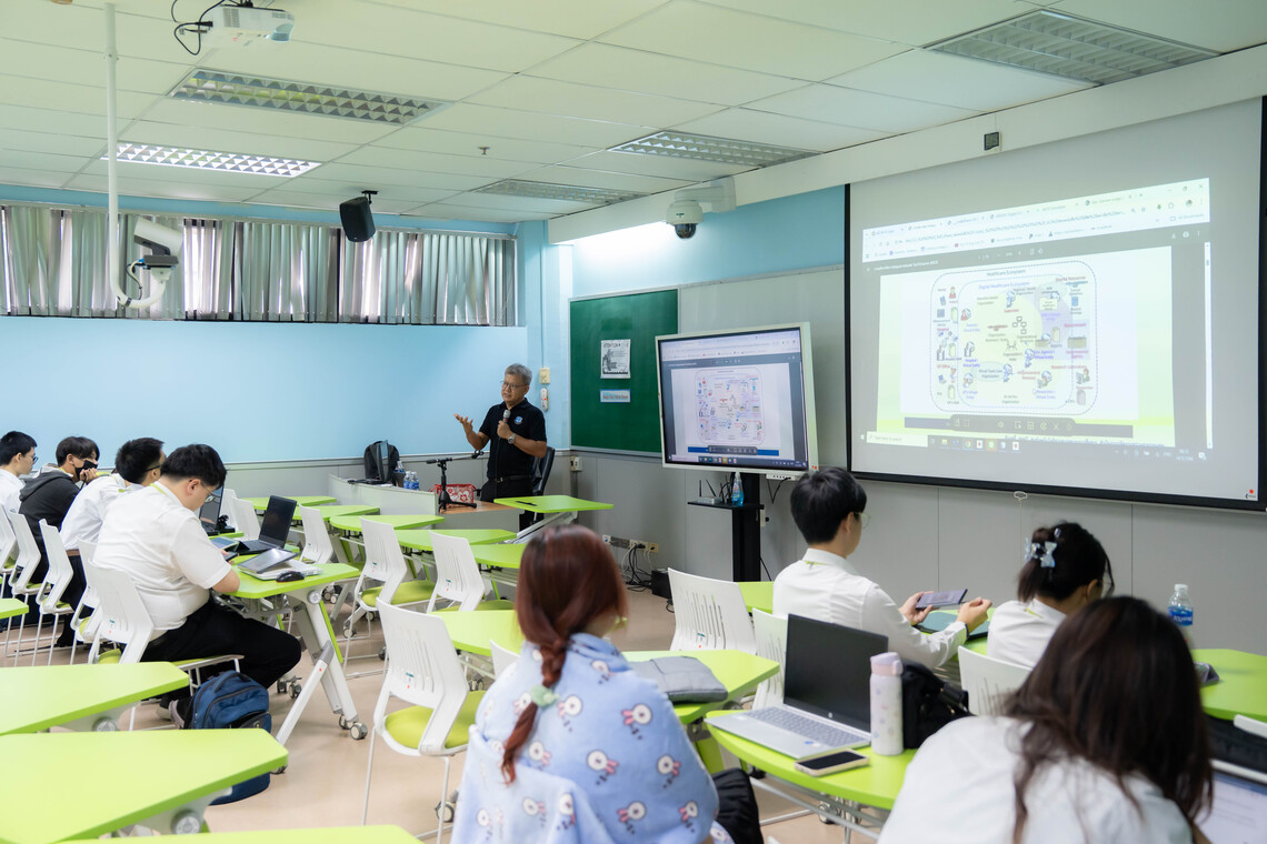 วันที่ 14 มีนาคม 2568 คณะเทคโนโลยีสารสนเทศและการสื่อสาร มหาวิทยาลัยมหิดล (ICT Mahidol) นำโดย อาจารย์ผกาพร เพ็งศาสตร์ รองคณบดีฝ่ายโครงสร้างพื้นฐานและเทคโนโลยี ซึ่งเป็นอาจารย์ประจำรายวิชา ทสวด 301 ระบบสุขภาพพื้นฐาน (ITDS301 Fundamentals of Healthcare Systems) จัดบรรยายพิเศษในหัวข้อ “JHCIS Software” โดยได้รับเกียรติจาก อาจารย์สัมฤทธิ์ สุขทวี นักวิชาการคอมพิวเตอร์ชำนาญการพิเศษ ศูนย์เทคโนโลยีสารสนเทศและการสื่อสาร สำนักงานปลัดกระทรวงสาธารณสุข เป็นวิทยากรถ่ายทอดความรู้เกี่ยวกับ JHCIS (Java Health Center Information System) ซึ่งเป็นซอฟต์แวร์ระบบสารสนเทศที่ใช้ในหน่วยบริการสุขภาพระดับปฐมภูมิของประเทศไทย เช่น โรงพยาบาลส่งเสริมสุขภาพตำบล (รพ.สต.) และศูนย์สุขภาพชุมชน ที่พัฒนาขึ้นโดยกระทรวงสาธารณสุขของประเทศไทย ให้แก่ นักศึกษาชั้นปีที่ 3 หลักสูตรวิทยาศาสตรบัณฑิต สาขาวิชาวิทยาการและเทคโนโลยีดิจิทัล (DST หลักสูตรไทย) ณ ห้อง IT321 ชั้น 3 คณะ ICT มหาวิทยาลัยมหิดล ศาลายา
