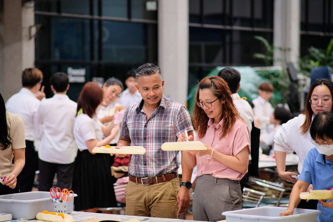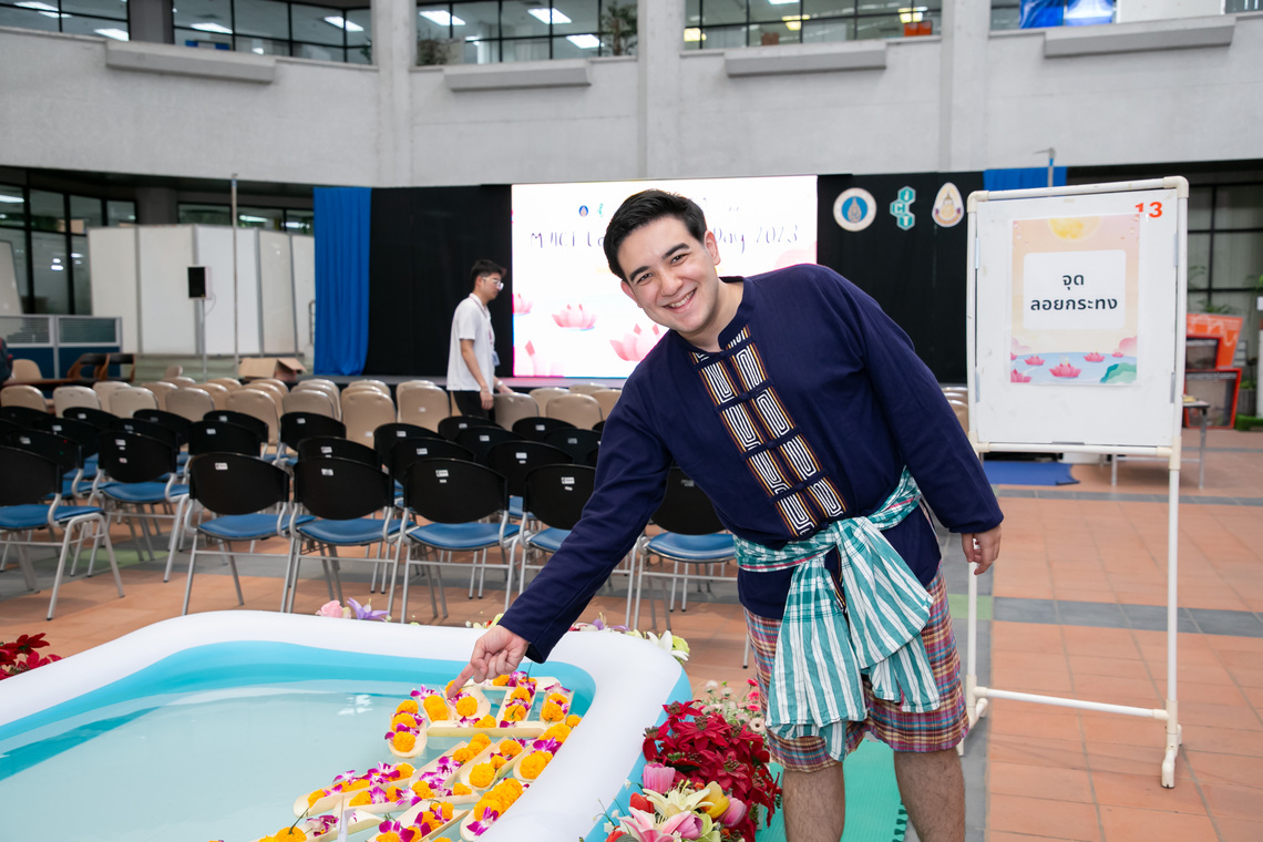 วันที่ 27 พฤศจิกายน 2566 นักศึกษาทุนกิจกรรม ร่วมกับ สำนักงานบริหารการศึกษา และคณะทำงานทำนุบำรุงศิลปวัฒนธรรมและประยุกต์ใช้ ICT สู่การทำนุบำรุงศิลปวัฒนธรรม คณะเทคโนโลยีสารสนเทศและการสื่อสาร มหาวิทยาลัยมหิดล (ICT Mahidol) จัดกิจกรรม “วันลอยกระทง” ให้กับนักศึกษา คณาจารย์ และบุคลากร โดยได้รับเกรียติจาก Mr. Brian Marcar, DST Program Coordinators and Student Activities Officer เป็นผู้กล่าวเปิดกิจกรรม ณ ลาน Innovative Space คณะ ICT มหาวิทยาลัยมหิดล ศาลายา