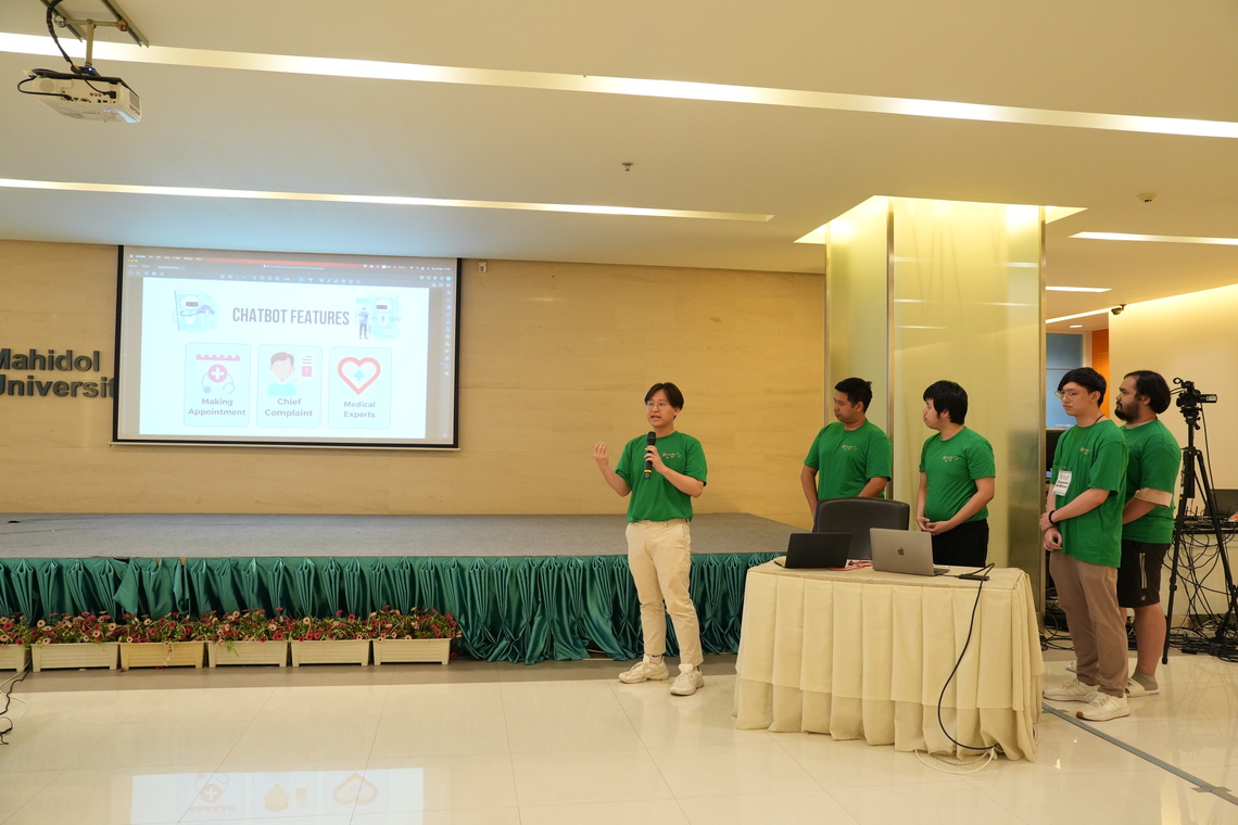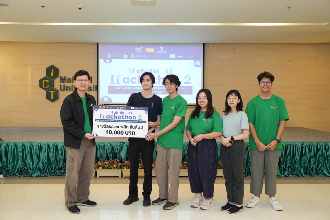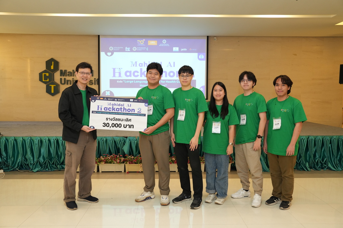 ระหว่างวันที่ 23 – 24 มีนาคม 2567 คณะเทคโนโลยีสารสนเทศและการสื่อสาร มหาวิทยาลัยมหิดล (ICT Mahidol) จัดโครงการแข่งขัน Mahidol AI Hackathon 2 หัวข้อ “Large Language Models for Health Care and Hospital Services” ณ ห้อง Bits & Bytes Hall ชั้น 4 คณะ ICT มหาวิทยาลัยมหิดล ศาลายา ซึ่งเป็นการแข่งขันต่อเนื่องแบบมาราธอน 24 ชั่วโมง โดยมีวัตถุประสงค์เพื่อส่งเสริมและสนับสนุนให้นักศึกษาของมหาวิทยาลัยมหิดล ได้เรียนรู้และนำเทคโนโลยี Artificial Intelligence (AI) Machine Learning (ML) และ Large Language Models (LLMs) ที่ทันสมัย มาประยุกต์ใช้ให้เกิดประโยชน์ อีกทั้ง ยังเป็นการส่งเสริมการระดมความคิดในการออกแบบ และจัดทำนวัตกรรมใหม่โดยการนำเทคโนโลยีที่ทันสมัย มาใช้เพื่อส่งเสริมนวัตกรรมด้านสุขภาพและบริการโรงพยาบาล โดยการนำเอา Large Language Models (LLMs) ซึ่งมีศักยภาพในการทำนาย ตัดสินใจ และปรับปรุงการให้บริการทางการแพทย์และโรงพยาบาลในรูปแบบที่น่าสนใจ รวมทั้ง เป็นการเปิดโอกาสให้นักศึกษาที่เข้าแข่งขัน ได้นำเสนอและพัฒนาแนวคิดที่สามารถใช้ LLMs มาใช้ในการแก้ไขปัญหาจริง เพื่อส่งเสริมนวัตกรรม และสามารถนำมาปรับปรุงระบบการให้บริการทางการแพทย์ได้ในอนาคต