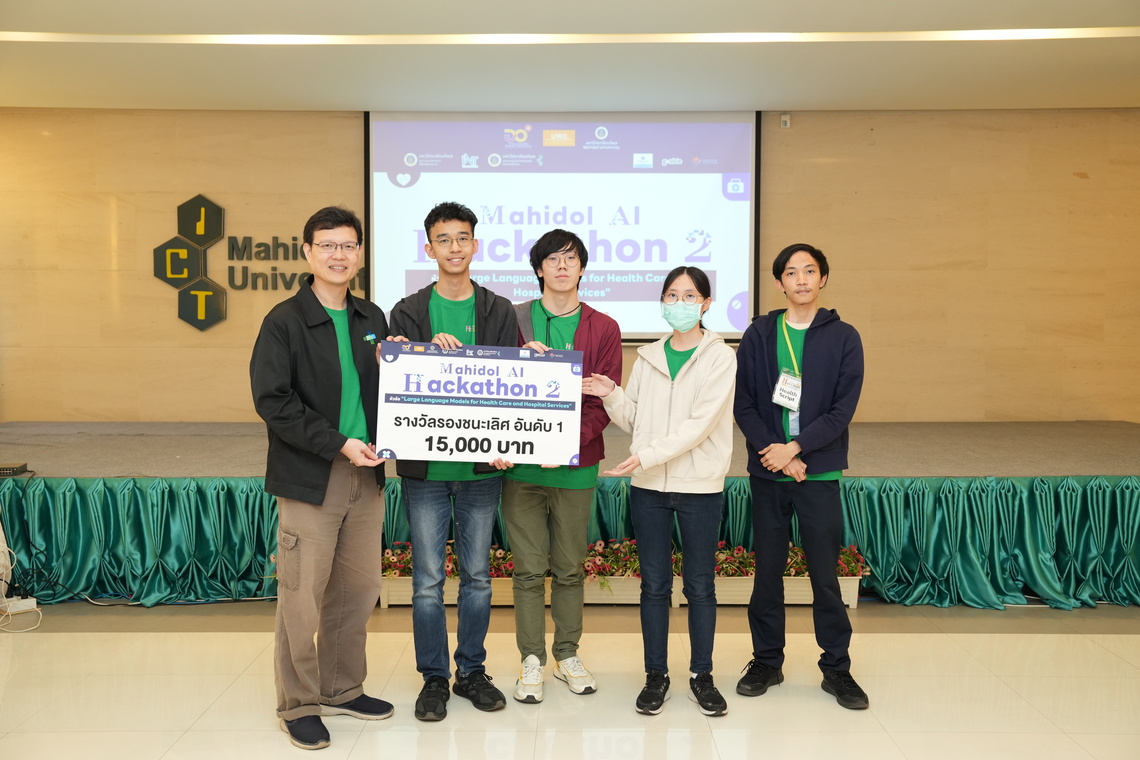 - รางวัลชนะเลิศ พร้อมเงินรางวัล 30,000 บาท และเกียรติบัตร ได้แก่ ทีม LLM = Little Language Models คณะ ICT ซึ่งสมาชิกในทีมประกอบด้วย นายปุณญวัจน์ คล้ำเนียม นายกรธวัช วิเศษไพฑูรย์ นางสาวบัณฑิตา พลการ นายจักกาย บริบูรณ์ และนายเอกบดินทร์ กาญจนเมืองทอง
