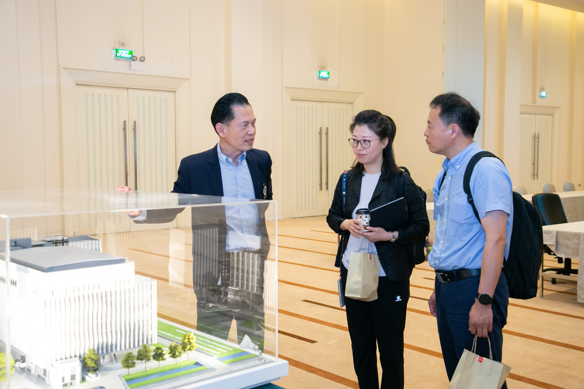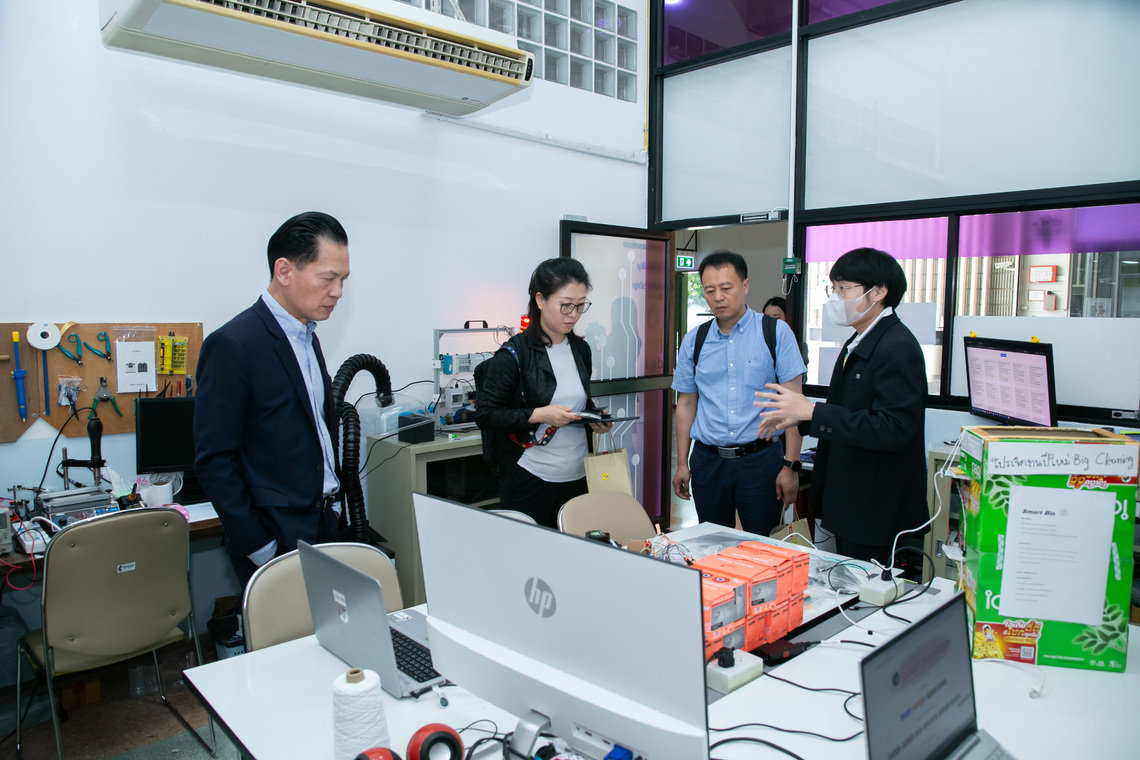 หลังเสร็จสิ้นการประชุม ดร. พัฒนศักดิ์ มงคลวัฒน์ คณบดี ได้ให้การต้อนรับคณะอาคันตุกะ ในโอกาสเข้าเยี่ยมชมคณะ ICT พร้อมแนะนำสิ่งอำนวยความสะดวก และพาเยี่ยมชมส่วนต่างๆ ของคณะ อาทิ สถาบันปัญญาประดิษฐ์มหิดล (MU AI Center) ห้องประชุม Grand Auditorium ห้องเรียน Smart Classroom ลาน Innovative Space และห้องปฏิบัติการ IoT (IoT Lab) โดยมีคุณธมกร เจียมรชดา นักวิชาการคอมพิวเตอร์ งานโครงสร้างพื้นฐานเทคโนโลยี และ นายเดเวน ตีวารี นักศึกษาหลักสูตรวิทยาศาสตรบัณฑิต สาขาวิชาเทคโนโลยีสารสนเทศและการสื่อสาร (ICT หลักสูตรนานาชาติ) ชั้นปีที่ 4 เป็นผู้แนะนำผลงานวิจัยด้าน IoT