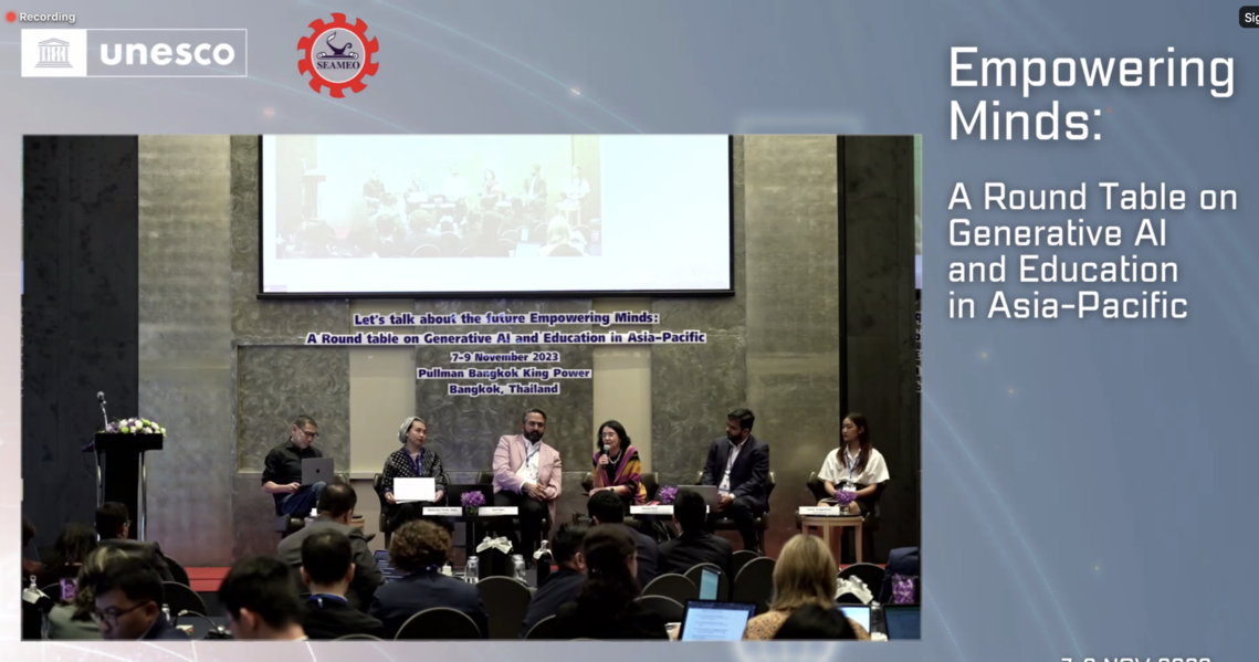 การประชุมเชิงวิชาการ “Empowering Minds: A Round Table on Generative AI and Education in Asia Pacific” จัดขึ้นโดย The UNESCO Regional Office in Bangkok (UNESCO Bangkok) มีวัตถุประสงค์เพื่อเปิดโอกาสให้นักศึกษาคณาจารย์ และผู้เชี่ยวชาญที่เข้าร่วมการประชุม ได้ร่วมเสวนาและแลกเปลี่ยนความคิดเห็นเกี่ยวกับโอกาส ผลกระทบและความเสี่ยงของ Generative AI เพื่อการศึกษา ในภูมิภาคเอเชียแปซิฟิก โดยมุ่งเน้นไปที่การเพิ่มขีดความสามารถของ AI การบูรณาการเทคโนโลยี AI ใหม่ๆ ที่เกิดขึ้น เพื่อพัฒนาแนวทางการศึกษา และการเรียนรู้ การคำนึงถึงความเสี่ยงของการนำ AI มาใช้ในแวดวงการศึกษา เป็นต้น