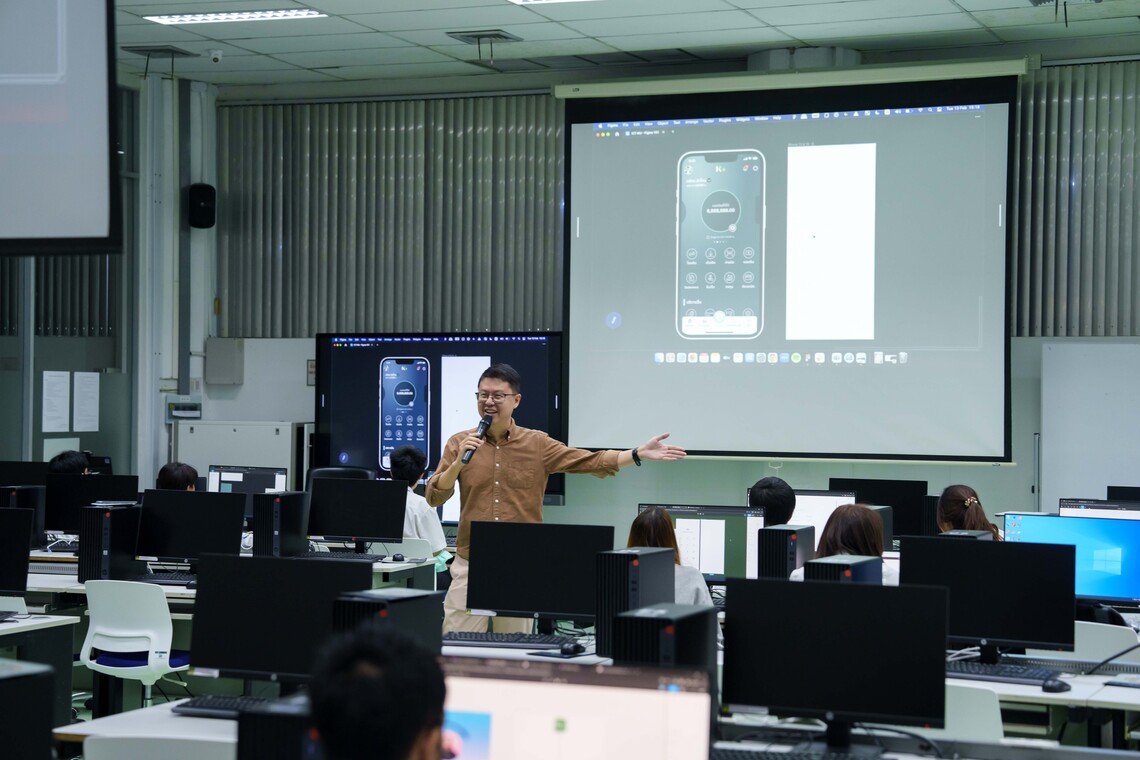 On this occasion, Mr. Sutham Thammawong, CEO & Co-Founder of KO-EXPERIENCE, served as the guest speaker to share basic knowledge of User Experience (UX) and User Interface (UI) design through the Figma program with second-year students of the Bachelor of Science in Digital Science and Technology (DST Thai Program) at Room IT105, 1st floor, ICT Building, Mahidol University, Salaya.