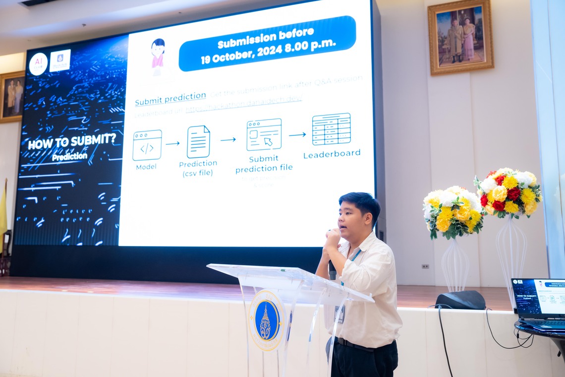 On October 16, 2024, the AI Club of the Faculty of Information and Communication Technology, Mahidol University (ICT Mahidol), led by Asst. Prof. Dr. Akara Supratak, Instructor of Computer Science Academic Group and advisor of the AI Club, organized the competition “MUICT Hackathon 2024: Alveolar Antral Artery Detection in CBCT images” for students from both programs: the Bachelor of Science in Information and Communication Technology (ICT International Program) and the Bachelor of Science in Digital Science and Technology (DST Thai Program). The opening ceremony of the competition was held in the Grand Auditorium, 4th floor, ICT Building, Mahidol University, Salaya.