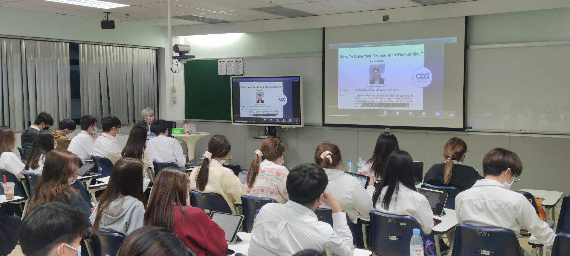 On 20 January 2023 – the Faculty of Information and Communication Technology, Mahidol University (ICT Mahidol), led by Assoc. Prof. Dr. Sudsanguan Ngamsuriyaroj, instructor of the course, ITDS201 Industry Problems and Experiences 2, organized a special talk on “Creating an Online Resume” for the 2nd year students of B.Sc. in Digital Science and Technology (DST Thai Program) in Room IT332, as well as via Microsoft Teams. On this occasion, Mr. Thitiphol Amornwongphan, Head of Talent Acquisition, CDG Group, taught and advised all students on how to create an effective online Resume.