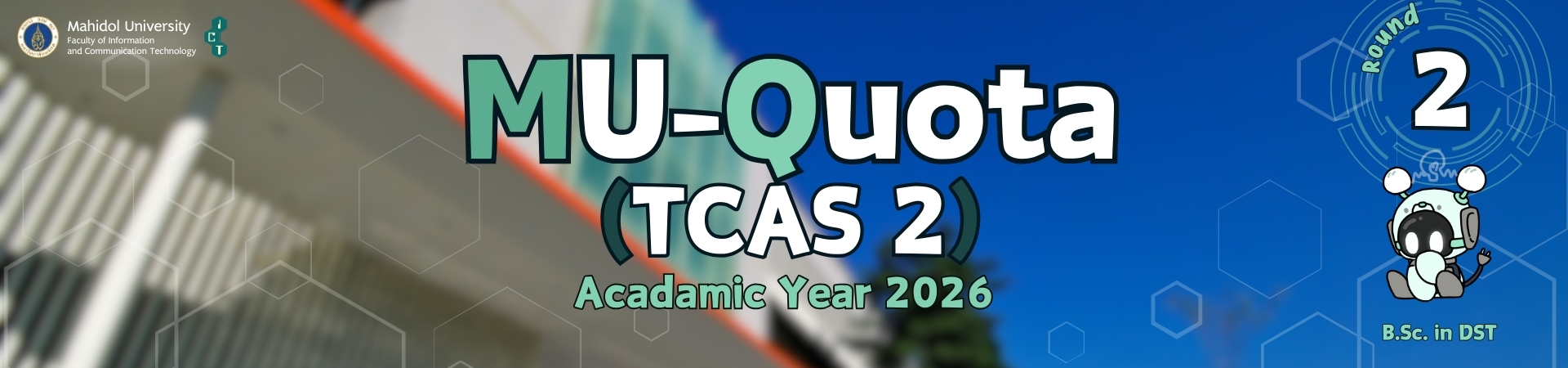 New Student Admissions Announcement DST July 22, 2025 Round 2: Quota (TCAS 2) Academic Year 2026 Share:
