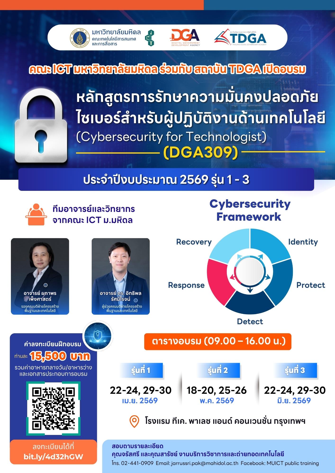 หลักสูตรการรักษาความมั่นคงปลอดภัยไซเบอร์สำหรับผู้ปฏิบัติงานด้านเทคโนโลยี (Cybersecurity for Technologist) (DGA 309)