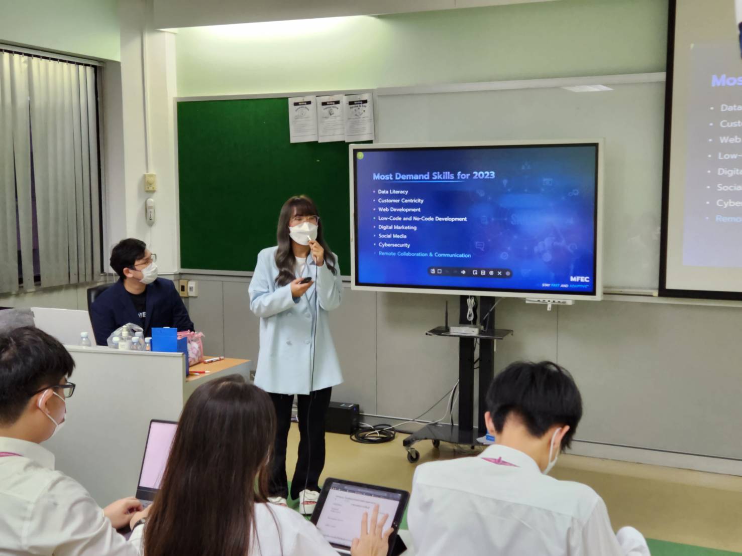 On this occasion, Mr. Pachara Iamchuasawad, and Ms. Methavadee Chawnamtip, Talent Acquisition Partners, MFEC Public Company Limited, served as the keynote speakers who shared their experiences and guidelines to prepare for the Work in a Digital Era to all students.
