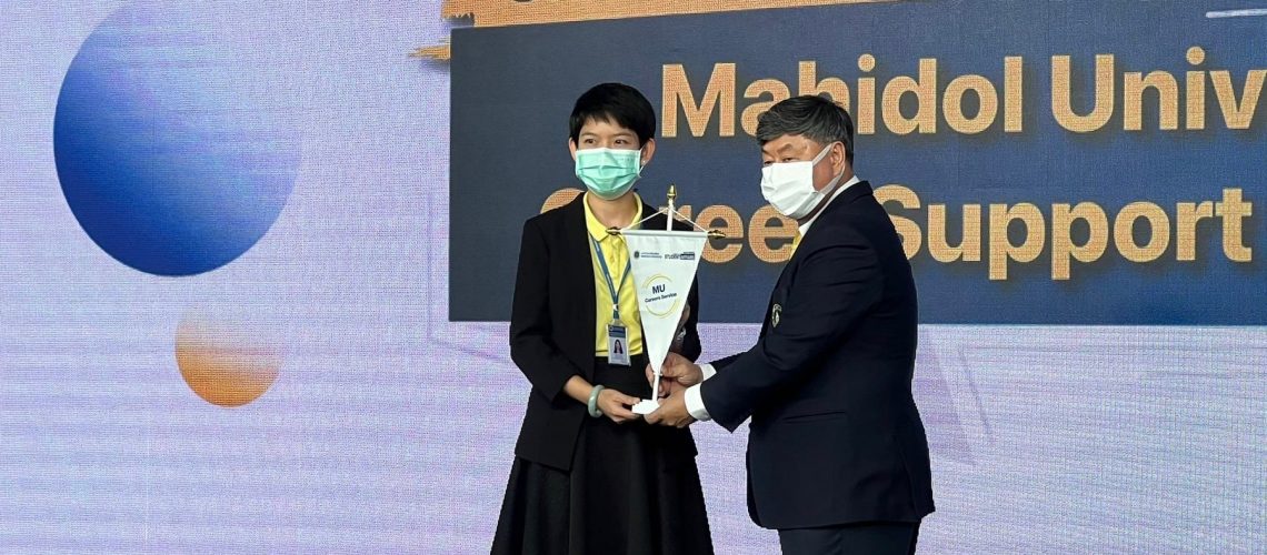 On this occasion, Asst. Prof. Flg. Off. Chatchai Kunavisarut, Vice President for Student Affairs and Alumni, introduced the project, “Mahidol University Career Support Services” to all participants. Furthermore, each MU executive from every faculty and institute also received a cooperation flag at Prince Mahidol Hall, Salaya campus.
