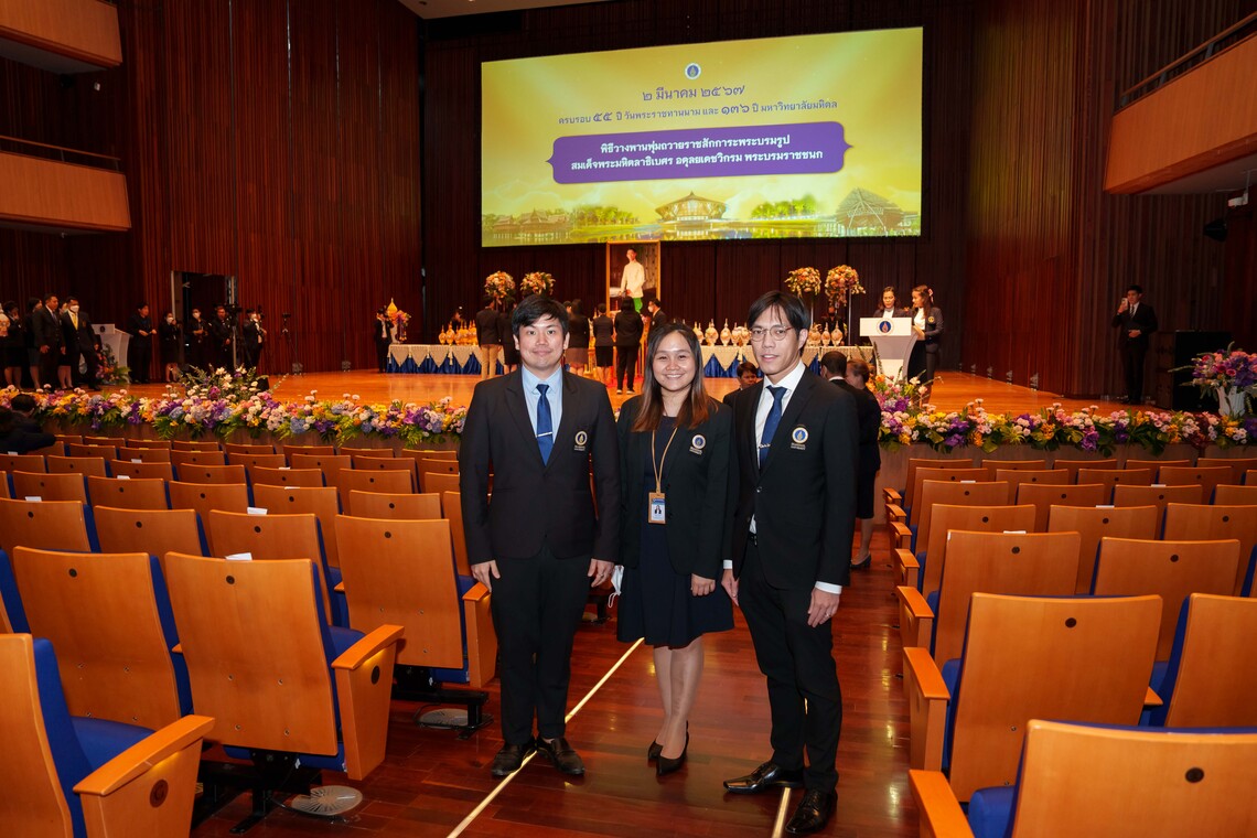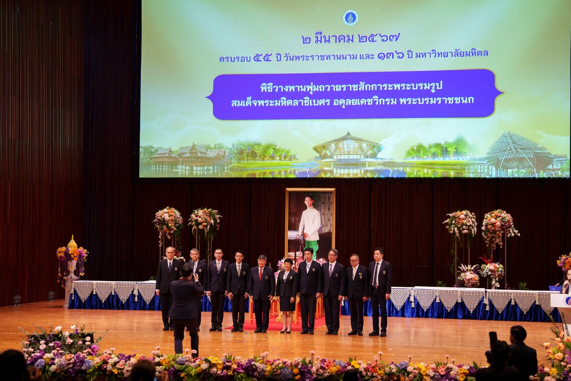 วันที่ 2 มีนาคม 2567 ดร.พัฒนศักดิ์ มงคลวัฒน์ คณบดี คณะเทคโนโลยีสารสนเทศและการสื่อสาร มหาวิทยาลัยมหิดล (ICT Mahidol) พร้อมด้วย ดร.เพชร สัจจชลพันธ์ รองคณบดีฝ่ายบริหารและทรัพยากรบุคคล ผศ.ดร. จิดาภา ไกรสังข์ ผู้ช่วยคณบดีฝ่ายพัฒนาหลักสูตร และ ดร.วุฒิชาติ แสวงผล ผู้ช่วยคณบดีฝ่ายวิจัย เข้าร่วมพิธีวางพานพุ่มถวายราชสักการะพระบรมรูปสมเด็จพระมหิตลาธิเบศร อดุลยเดชวิกรม พระบรมราชชนก เนื่องในโอกาสวันครบรอบ 55 ปี วันพระราชทานนาม และ 136 ปี มหาวิทยาลัยมหิดล โดยมี ศาสตราจารย์ นายแพทย์บรรจง มไหสวริยะ อธิการบดีมหาวิทยาลัยมหิดล เป็นประธานในพิธี พร้อมด้วย ผู้บริหารมหาวิทยาลัย และผู้บริหารจากส่วนงานต่าง ๆ ในมหาวิทยาลัยมหิดล เข้าร่วมพิธี ณ หอประชุมมหิดลสิทธาคาร มหาวิทยาลัยมหิดล ศาลายา