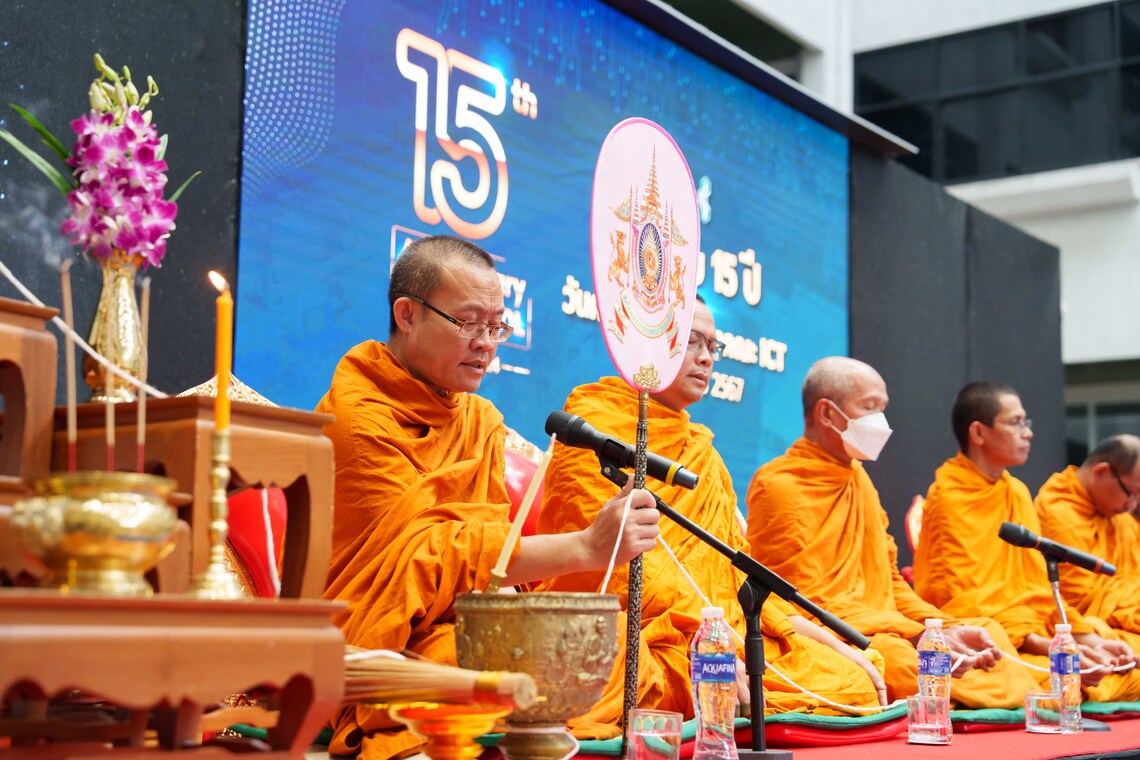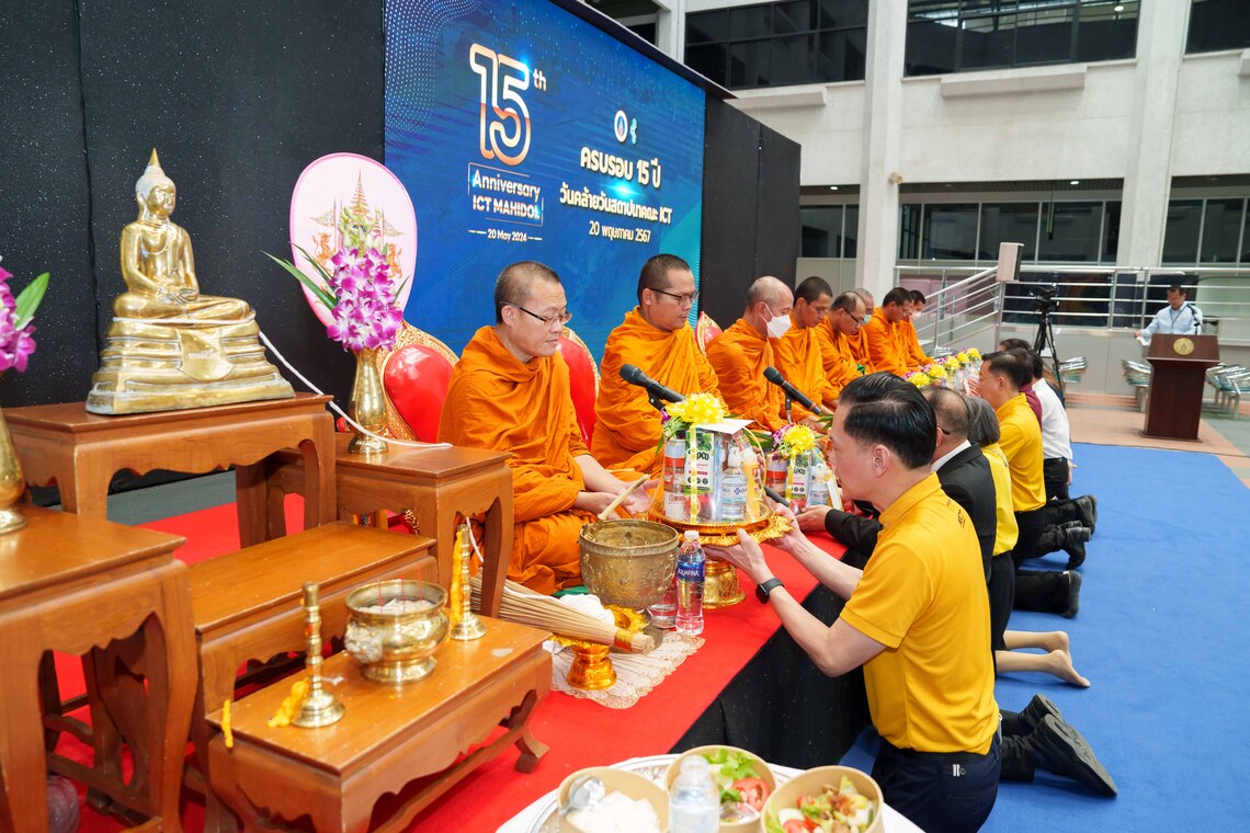 วันที่ 20 พฤษภาคม 2567 คณะเทคโนโลยีสารสนเทศและการสื่อสาร มหาวิทยาลัยมหิดล (ICT Mahidol) จัดงานครบรอบ 15 ปี วันคล้ายวันสถาปนาคณะ ICT โดยได้รับเกียรติจาก ดร. พัฒนศักดิ์ มงคลวัฒน์ คณบดี นำทีมคณะผู้บริหาร คณาจารย์ และบุคลากร ร่วมสักการะเจ้าที่ประจำคณะ ICT และสิ่งศักดิ์สิทธิ์รอบมหาวิทยาลัย ได้แก่ ศาลเจ้าพ่อขุนทุ่ง พระพุทธมหิดลมงคลปัญญาญาณ และพระราชานุสาวรีย์ สมเด็จพระมหิตลาธิเบศร อดุลยเดชวิกรม พระบรมราชชนก ในโอกาสนี้ ผู้บริหาร และผู้แทนจากส่วนงานต่างๆ ในมหาวิทยาลัยมหิดล ได้ให้เกียรติมาร่วมแสดงความยินดีเนื่องในโอกาสครบรอบ 15 ปี แห่งการสถาปนาคณะ ICT ณ ลาน Innovative Space ชั้น 1 อย่างอุ่นหนาฝาคั่ง