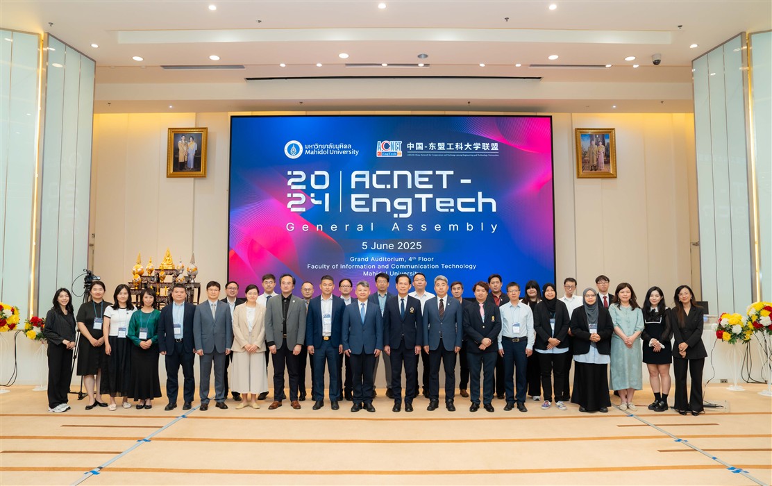 วันที่ 5 มิถุนายน 2568 คณะเทคโนโลยีสารสนเทศและการสื่อสาร มหาวิทยาลัยมหิดล (ICT Mahidol) นำโดย ดร.พัฒนศักดิ์ มงคลวัฒน์ คณบดี ร่วมกับมหาวิทยาลัยมหิดล เป็นเจ้าภาพจัดการประชุม 2024 ACNET-EngTech General Assembly โดยได้รับเกียรติจาก ศาสตราจารย์ นายแพทย์ปิยะมิตร ศรีธรา อธิการบดี มหาวิทยาลัยมหิดล ในฐานะ President from ASEAN-side และ Prof. Liu Xiuguo, Assistant President จาก Tianjin University ในฐานะ President from Chinese-side กล่าวเปิดการประชุมและกล่าวต้อนรับสมาชิกเครือข่าย ACNET-EngTech โดยมี ผศ.ดร.ทิพาจินต์ ไทยพิสุทธิกุล ผู้ช่วยคณบดีฝ่ายบริการวิชาการและถ่ายทอดเทคโนโลยี และ ดร.พิสิฐ ไพรวัฒนา ผู้ช่วยคณบดีฝ่ายสื่อสารองค์กรและเทคโนโลยีสื่อ เป็นพิธีกรดำเนินการประชุม พร้อมด้วย ผศ.ดร.บุญสิทธิ์ ยิ้มวาสนา อาจารย์ประจำกลุ่มวิชาวิทยาการคอมพิวเตอร์ ผศ.ดร.ธนพล นรเสฏฐ์ ผู้ช่วยคณบดีฝ่ายการศึกษา ผศ.ดร.จิดาภา ไกรสังข์ ผู้ช่วยคณบดีฝ่ายพัฒนาหลักสูตร ผศ.ดร.ศิริเพ็ญ พงษ์ไพเชฐ ผู้ช่วยคณบดีฝ่ายสารสนเทศและระบบ ดร.กนกศักดิ์ วัฒนะโชติ ผศ. ดร. ชาญยศ ปลื้มปิติวิริยะเวช อาจารย์ประจำกลุ่มวิชาวิทยาการคอมพิวเตอร์ คณะ ICT คุณวรรณพิมล เสนาแพทย์ภากร ผู้อำนวยการกองวิเทศสัมพันธ์ และสมาชิกในเครือข่าย ACNET-EngTech เข้าร่วมการประชุม ณ ห้อง Grand Auditorium ห้อง IT404 และห้อง IT406 คณะ ICT มหาวิทยาลัยมหิดล ศาลายา และในรูปแบบออนไลน์ผ่านโปรแกรม Zoom