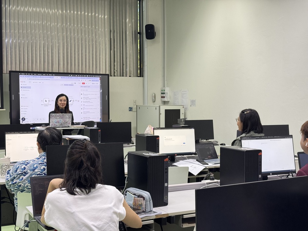 วันที่ 23 สิงหาคม 2568 คณะเทคโนโลยีสารสนเทศและการสื่อสาร มหาวิทยาลัยมหิดล (ICT Mahidol) จัดอบรมหลักสูตร “Automate Your World: AI Automation for Everyone” เสริมทักษะการทำงานยุคใหม่ด้วย AI และระบบอัตโนมัติ โดยได้รับเกียรติจาก ผศ.ดร.ทิพาจินต์ ไทยพิสุทธิกุล ผู้ช่วยคณบดีฝ่ายบริการวิชาการและถ่ายทอดเทคโนโลยี เป็นวิทยากรบรรยายและถ่ายทอดความรู้ ให้แก่ผู้สนใจทั่วไป ณ ห้องปฏิบัติการคอมพิวเตอร์ IT103 คณะ ICT มหาวิทยาลัยมหิดล ศาลายา