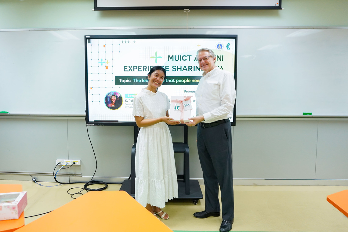 วันที่ 28 กุมภาพันธ์ 2567 คณะเทคโนโลยีสารสนเทศและการสื่อสาร มหาวิทยาลัยมหิดล (ICT Mahidol) จัดกิจกรรมเสวนา “Alumni Experience Sharing Session” ในหัวข้อ “The Leadership that People Need at Work” โดยได้รับเกียรติจาก คุณปาลิน มาตรวังแสง Senior Product Delivery Manager จากบริษัท เน็กซเตอร์ ดิจิตอล แอนด์ โซลูชั่น จำกัด (Q-Chang) ซึ่งเป็นศิษย์เก่า ICT รุ่น 7 เป็นวิทยากรแชร์ประสบการณ์และให้ความรู้เกี่ยวกับการทำงานในตำแหน่งเกี่ยวกับด้านบริหาร พร้อมแนะนำแนวทางการเป็นผู้นำที่น่าเชื่อถือ ให้แก่นักศึกษาที่สนใจ ทั้งในหลักสูตรวิทยาศาสตรบัณฑิต สาขาวิชาเทคโนโลยีสารสนเทศและการสื่อสาร (ICT หลักสูตรนานาชาติ) และสาขาวิชาวิทยาการและเทคโนโลยีดิจิทัล (DST หลักสูตรไทย) ณ ห้อง IT331 ชั้น 3 คณะ ICT มหาวิทยาลัยมหิดล ศาลายา