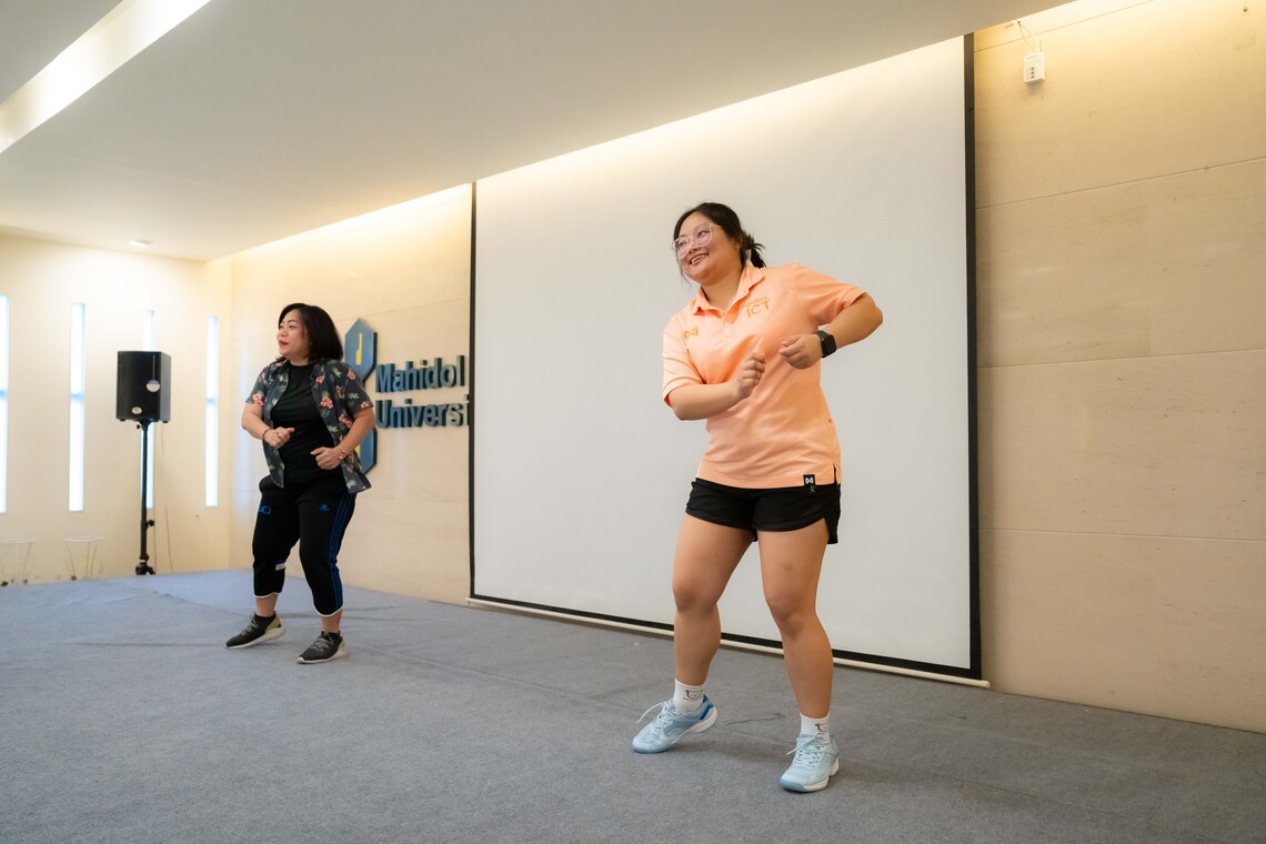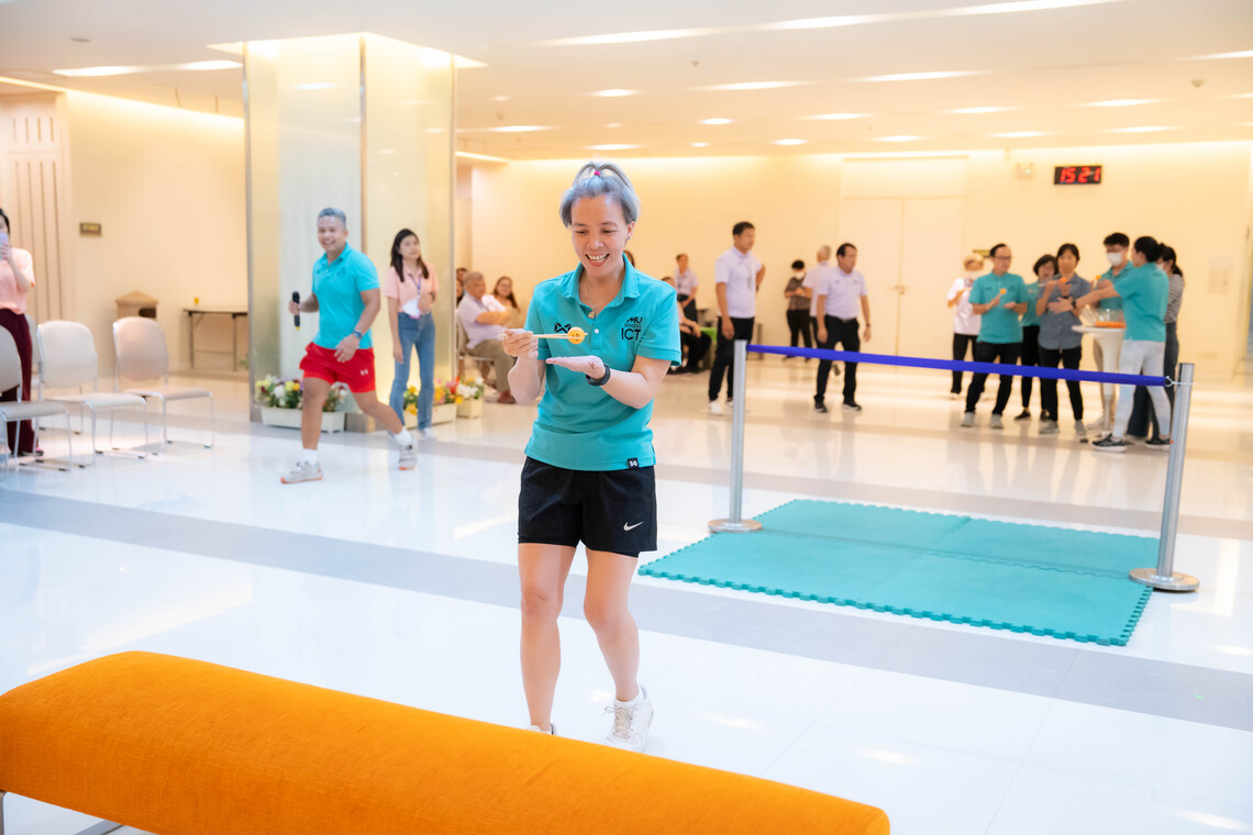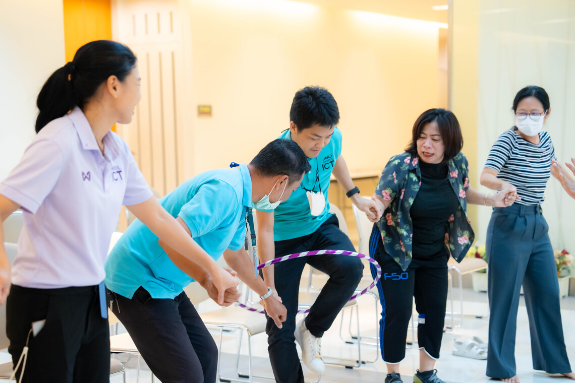 วันที่ 12 กันยายน 2567 คณะทำงานเสริมสร้างความสุขและความผูกพัน คณะเทคโนโลยีสารสนเทศและการสื่อสาร มหาวิทยาลัยมหิดล (ICT Mahidol) นำโดย ดร. เพชร สัจจชลพันธ์ รองคณบดีฝ่ายบริหารและทรัพยากรบุคคล ในฐานะหัวหน้าคณะทำงานฯ จัด “กิจกรรมออกกำลังกาย Last Match” พาบุคลากร ทั้ง 3 ทีม ได้แก่ ทีมสีส้ม ทีมสีเขียว ทีมสีม่วง ร่วมแรง ร่วมใจ ออกกำลังกายด้วยกัน เพื่อค้นหาสีที่ชนะเลิศ ผ่านกิจกรรมต่างๆ เช่น การเต้นแอโรบิก ลอดห่วงฮูลาฮูป คีบปิงปอง เป็นต้น พร้อมมอบรางวัลต่างๆ จากกิจกรรม “August Active Sport Month: สิงหา พากันฟิต” ให้แก่ผู้ที่ออกกำลังกายสูงสุด 10 อันดับแรกของแต่ละสี และ ผู้ที่เก็บชั่วโมงออกกำลังกายสูงสุด 5 อันดับจากบุคลากรทั้งหมด ณ ห้อง Bits & Bytes Hall ชั้น 4 คณะ ICT มหาวิทยาลัยมหิดล ศาลายา