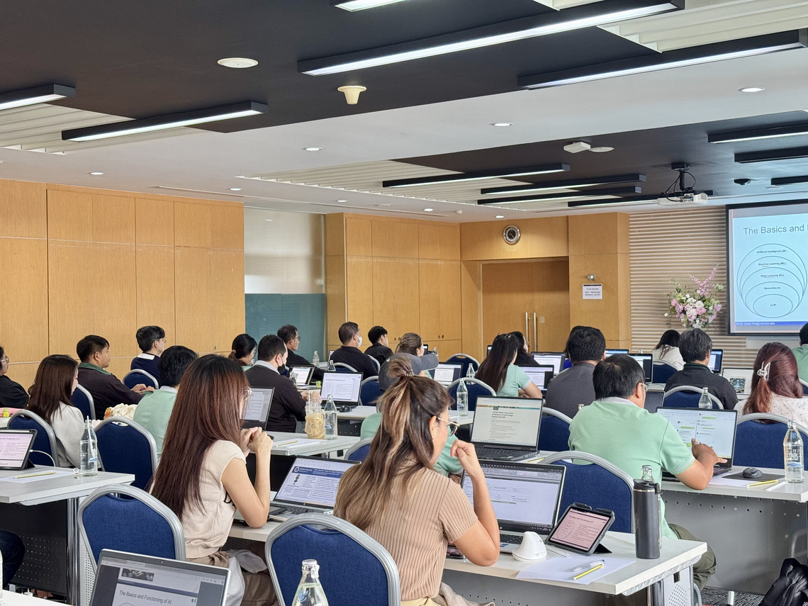 โครงการอบรม “Boost Your Career Proficiency: AI and Prompt Engineering Skills” สำหรับบริษัท นารายณ์พร็อพเพอตี้ จำกัด จัดขึ้นโดยมีวัตถุประสงค์เพื่อพัฒนาทักษะและความรู้ด้านการใช้ปัญญาประดิษฐ์ (AI) และ Prompt Engineering เช่น เทคนิคการสร้างเนื้อหาของ AI (Generative AI) ความรู้เบื้องต้นของการเรียนรู้เชิงลึก (Deep Learning) จริยธรรมและผลกระทบของการใช้ AI และ Prompt Engineering ในปัจจุบัน ทักษะความเข้าใจและการนำเทคโนโลยีปัญญาประดิษฐ์ไปใช้ให้เกิดประโยชน์ (AI Literacy) การออกแบบและพัฒนาคำสั่ง AI (Prompt Engineering) ผ่านกรณีศึกษาต่างๆ ที่จะทำให้ AI สามารถเรียนรู้และจัดการกับคำถามที่มีความซับซ้อนได้ เป็นต้น ซึ่งจะช่วยให้ผู้เข้าอบรมสามารถนำองค์ความรู้จากการอบรมครั้งนี้ ไปเสริมสร้างทักษะด้านการวิจัยของบริษัทให้มีประสิทธิภาพมากขึ้น