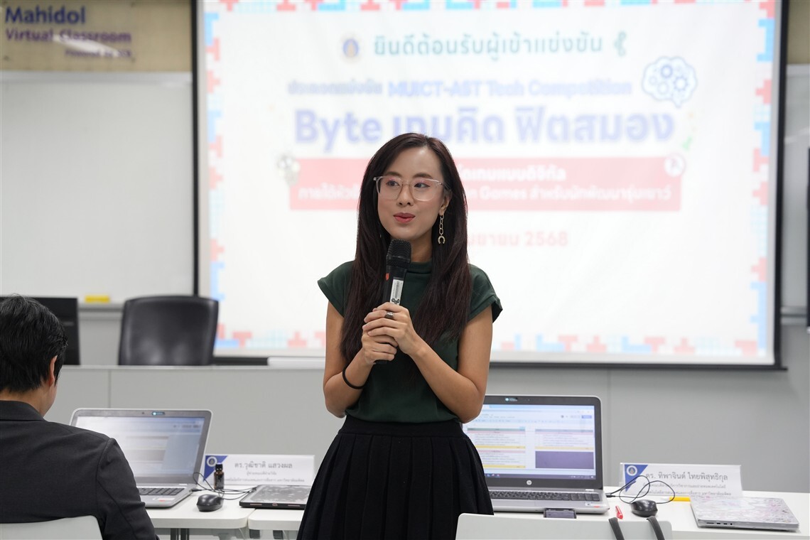 วันที่ 27 กันยายน 2568 คณะเทคโนโลยีสารสนเทศและการสื่อสาร มหาวิทยาลัยมหิดล (ICT Mahidol) จัดกิจกรรม MUICT-AST Tech Competition “Byte เกมคิด ฟิตสมอง” ประกวดแข่งขันจัดทำบอร์ดเกมแบบดิจิทัล ภายใต้หัวข้อ Byte-sized Brain Games สำหรับนักพัฒนารุ่นเยาว์ โดยได้รับเกียรติจาก ผู้ช่วยศาสตราจารย์ ดร.ทิพาจินต์ ไทยพิสุทธิกุล ผู้ช่วยคณบดีฝ่ายบริการวิชาการและถ่ายทอดเทคโนโลยี เป็นประธานกล่าวเปิดการแข่งขัน ณ ห้อง IT 204 คณะ ICT มหาวิทยาลัยมหิดล ศาลายา