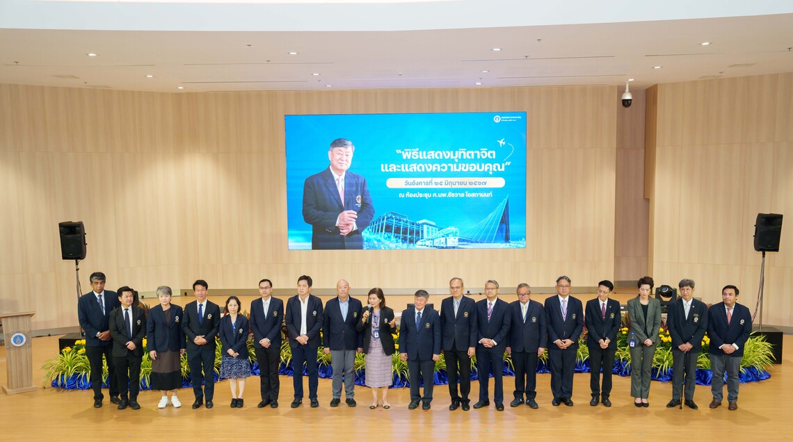 วันที่ 25 มิถุนายน 2567 ดร. พัฒนศักดิ์ มงคลวัฒน์ คณบดี คณะเทคโนโลยีสารสนเทศและการสื่อสาร มหาวิทยาลัยมหิดล (ICT Mahidol) พร้อมด้วยทีมผู้บริหาร คณาจารย์ และบุคลากร เข้าร่วมพิธีแสดงมุทิตาจิตและแสดงความขอบคุณ เนื่องในโอกาสครบวาระการดำรงตำแหน่งอธิการบดีมหาวิทยาลัยมหิดล ของ ศาสตราจารย์ นายแพทย์บรรจง มไหสวริยะ และทีมบริหาร มหาวิทยาลัยมหิดล ณ ห้องบรรยาย ศ. นพ. ชัชวาล โอสถานนท์ ชั้น 1 สำนักงานอธิการบดี มหาวิทยาลัยมหิดล ศาลายา