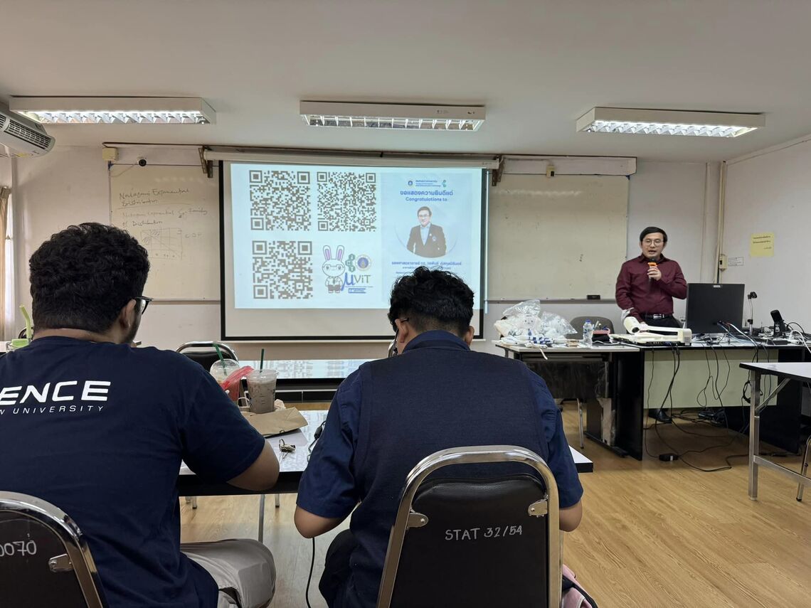 วันที่ 6 มิถุนายน 2567 รองศาสตราจารย์ ดร. วรพันธ์ คู่สกุลนิรันดร์ หัวหน้ากลุ่มวิจัย Machine Vision and Information Transfer Lab (MVIT) และ ประธานหลักสูตรปรัชญาดุษฎีบัณฑิต สาขาวิชาวิทยาการคอมพิวเตอร์ คณะเทคโนโลยีสารสนเทศและการสื่อสาร มหาวิทยาลัยมหิดล (ICT Mahidol) ได้รับเชิญเป็นวิทยากรในการบรรยายพิเศษ หัวข้อ “การประยุกต์ใช้ Computer Vision ในการเกษตรและปศุสัตว์” ซึ่งเป็นบรรยายให้ความรู้เกี่ยวกับการใช้องค์ความรู้ด้าน Computer Vision ในงานด้านการแพทย์และการเกษตร ให้แก่นักศึกษาสาขาวิชาสถิติ คณะวิทยาศาสตร์ มหาวิทยาลัยขอนแก่น และผู้สนใจ โดยได้รับเกียรติจาก ผู้ช่วยศาสตราจารย์ ดร. ธนพงศ์ อินทระ อาจารย์ประจำสาขาวิชาสถิติ ให้การต้อนรับ ณ ห้อง SC6409 คณะวิทยาศาสตร์ มหาวิทยาลัยขอนแก่น จังหวัดขอนแก่น