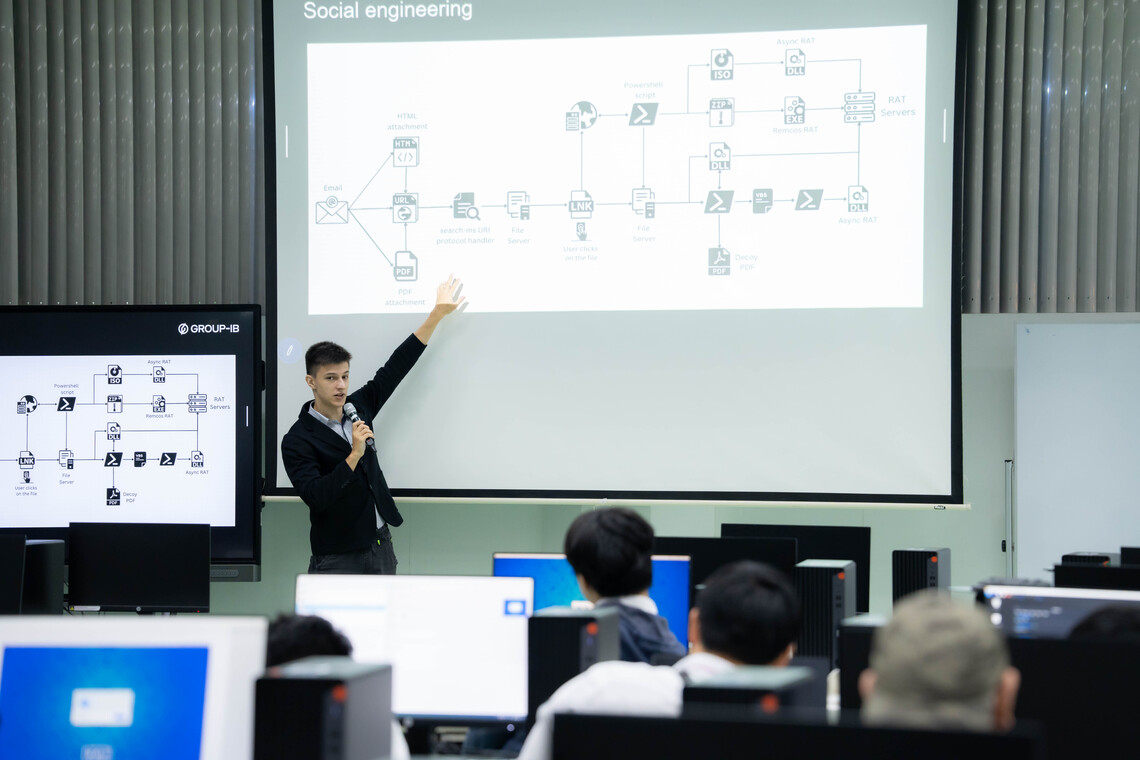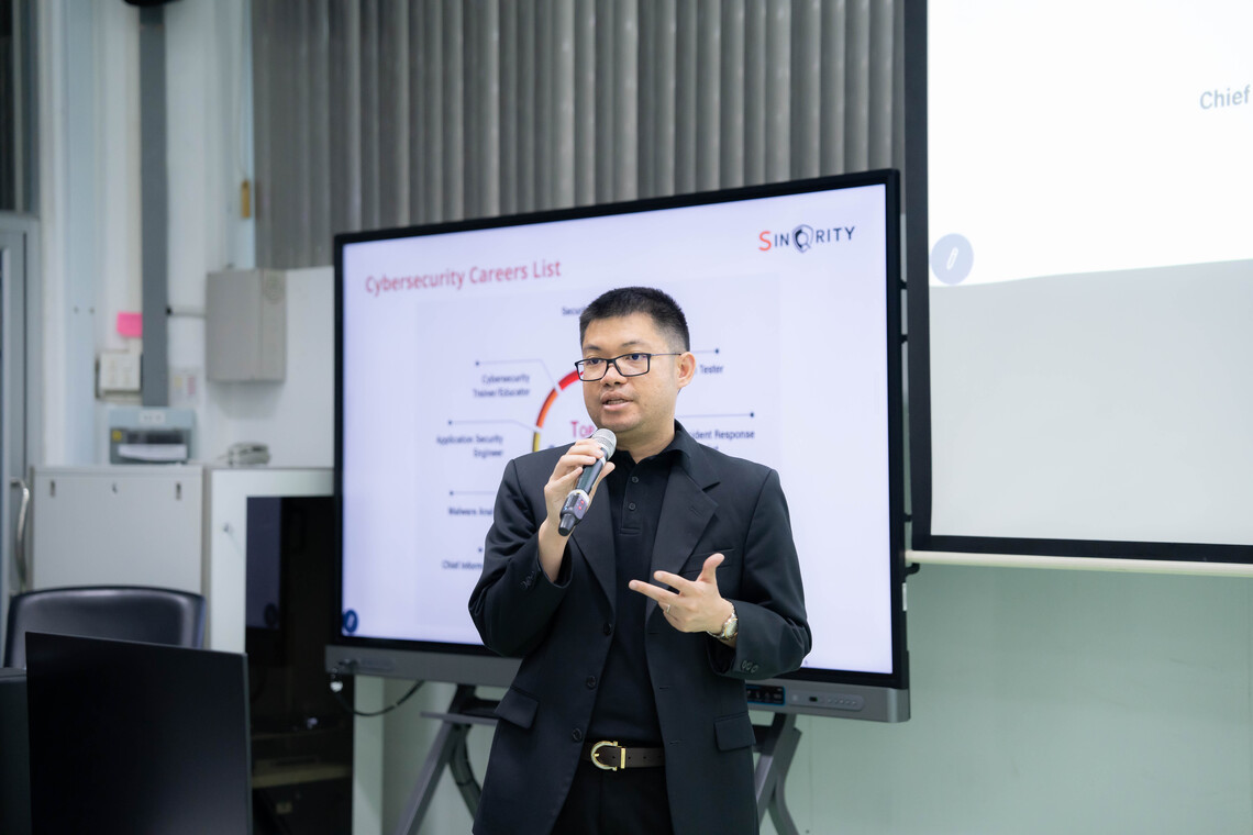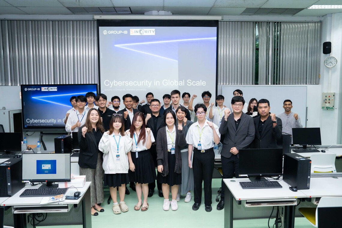 วันที่ 11 กันยายน 2567 คณะเทคโนโลยีสารสนเทศและการสื่อสาร มหาวิทยาลัยมหิดล (ICT Mahidol) นำโดย รศ.ดร. วัสกา วิสุทธิวิเศษ ประธานหลักสูตรวิทยาศาสตรมหาบัณฑิต สาขาวิชาความมั่นคงไซเบอร์และการประกันสารสนเทศ ในฐานะที่ปรึกษาชมรม Cybersecurity Club คณะ ICT พร้อมด้วย นักศึกษาจากชมรม Cybersecurity Club คณะ ICT และ คณะวิศวกรรมศาสตร์ มหาวิทยาลัยมหิดล ร่วมให้การต้อนรับวิทยากรจากบริษัท ไซโนริตี้ จำกัด และ บริษัท กรุ๊ป-ไอบี เอสอีเอ จำกัด ในโอกาสจัดบรรยายพิเศษหัวข้อ “Cybersecurity in Global Scale” โดยได้รับเกียรติจากคุณหมื่นภู รัตนประทุม Chief Executive Officer จากบริษัท ไซโนริตี้ จำกัด และ Mr. Denis Kurakin, Head of Red Teaming, APAC at Group-IB จากบริษัท กรุ๊ป-ไอบี เอสอีเอ จำกัด ร่วมเป็นวิทยากรถ่ายทอดความรู้เกี่ยวกับภาพรวมการให้บริการด้านต่างๆ ของบริษัทฯ พร้อมแนะนำแนวทางในการประกอบอาชีพทางด้าน Cyber Security และทำกิจกรรมเวิร์กชอป Team-Hand on lab with Group-IB ร่วมกับนักศึกษาชมรม Cyber Club ณ ห้องปฏิบัติการคอมพิวเตอร์ IT105 ชั้น 1 คณะ ICT มหาวิทยาลัยมหิดล ศาลายา