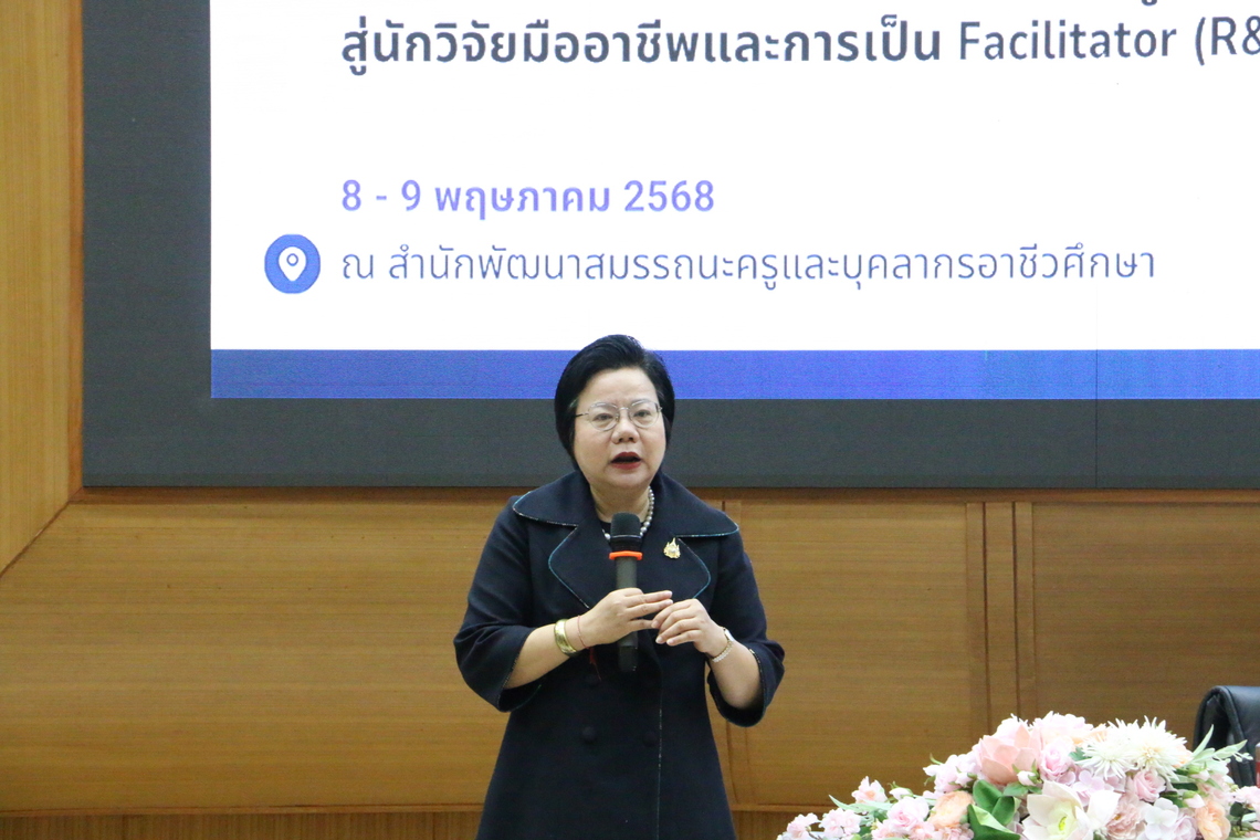 โครงการอบรมเชิงปฏิบัติการ ในหัวข้อ “ส่งเสริมและพัฒนาศักยภาพครูอาชีวศึกษาสู่นักวิจัยมืออาชีพและการเป็น Facilitator (R&F)” เป็นกิจกรรมภายใต้โครงการ Customized Training โดยมีวัตถุประสงค์เพื่อพัฒนาทักษะการวิจัยของครูอาชีวศึกษา ซึ่งถือเป็นปัจจัยสำคัญในการสร้างนวัตกรรมการเรียนการสอน และการแก้ไขปัญหาต่างๆ ในห้องเรียน นอกจากนี้ ยังเป็นการพัฒนาศักยภาพของครูและบุคลากรอาชีวศึกษาในการปฏิบัติหน้าที่เป็นคนกลาง (Facilitator) ในการส่งเสริมกระบวนการเรียนรู้อย่างมีส่วนร่วมของผู้เรียน ซึ่งจะช่วยให้ครูและบุคลากรอาชีวศึกษา สามารถออกแบบกิจกรรมการเรียนรู้ที่ส่งเสริมความคิดสร้างสรรค์และการเรียนรู้เชิงลึกของผู้เรียนอาชีวศึกษาได้อย่างมีประสิทธิภาพยิ่งขึ้น