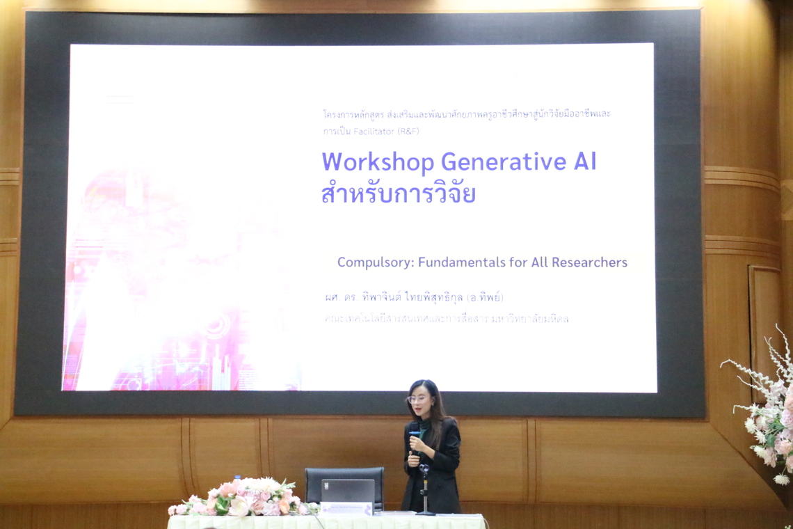 วันที่ 8 – 9 พฤษภาคม 2568 คณะเทคโนโลยีสารสนเทศและการสื่อสาร มหาวิทยาลัยมหิดล (ICT Mahidol) จัดโครงการอบรมเชิงปฏิบัติการ ในหัวข้อ “ส่งเสริมและพัฒนาศักยภาพครูอาชีวศึกษาสู่นักวิจัยมืออาชีพและการเป็น Facilitator (R&F)” โดยได้รับเกียรติจาก ดร.ธิติมา โรจน์วัชราภิบาล ผู้อำนวยการ สำนักพัฒนาสมรรถนะครูและบุคลากรอาชีวศึกษา เป็นผู้กล่าวเปิดการอบรม และ ผศ. ดร.ทิพาจินต์ ไทยพิสุทธิกุล ผู้ช่วยคณบดีฝ่ายบริการวิชาการและถ่ายทอดเทคโนโลยี เป็นวิทยากรถ่ายทอดความรู้ด้านการประยุกต์ใช้ปัญญาประดิษฐ์ (Artificial Intelligence (AI)) เพื่อช่วยเหลือในการพัฒนางานวิจัย ให้แก่ครูและบุคลากรอาชีวศึกษา ณ สำนักพัฒนาสมรรถนะครูและบุคลากรอาชีวศึกษา กรุงเทพมหานครฯ