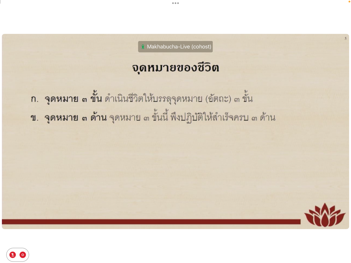 กิจกรรมธรรมะบรรยายเนื่องในวันมาฆบูชา เรื่อง “จุดหมายของชีวิต” เป็นหนึ่งในกิจกรรมส่งเสริมพระพุทธศาสนา และทำนุบำรุงศิลปวัฒนธรรม โดยมีวัตถุประสงค์เพื่อให้คณาจารย์ และบุคลากร สามารถนำข้อคิดที่ได้จากการฟังธรรมะบรรยายไปใช้เป็นแนวทางในการดำเนินชีวิตได้ถูกต้องตามหลักพระพุทธศาสนา อีกทั้งยังเป็นการธำรงไว้ซึ่งวัฒนธรรมและประเพณีอันดีงามในวันสำคัญทางพระพุทธศาสนาอีกด้วย