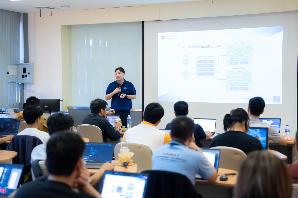 โครงการอบรมเชิงปฏิบัติการ หลักสูตร “Docker and Kubernetes Essentials” รุ่นที่ 2 มีวัตถุประสงค์เพื่อให้ผู้เข้าอบรมได้เข้าใจถึงหลักการ แนวคิดที่สำคัญของเทคโนโลยี Container และเนื้อหาด้านการฝึกปฏิบัติจริง โดยการอบรมในวันแรกจะเป็นเนื้อหาเกี่ยวกับเทคโนโลยี Container และ Docker ส่วนการอบรมวันที่สองจะเป็นเนื้อหาเกี่ยวกับ Kubernetes ซึ่งหลักสูตรนี้ จะช่วยให้ผู้เข้าอบรมสามารถนำความรู้ไปประยุกต์ใช้ในงานของตนเองได้อย่างมีประสิทธิภาพยิ่งขึ้น