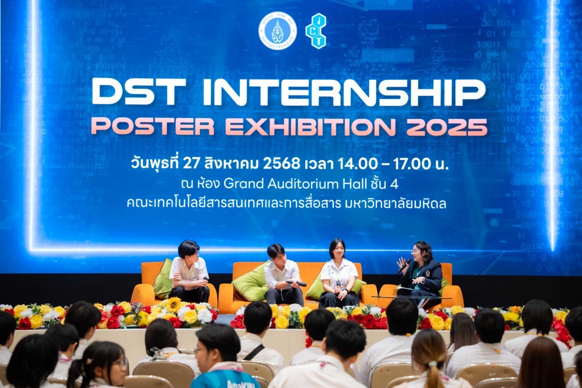 กิจกรรม “DST Internship Exhibition 2025” เป็นกิจกรรมที่คณะ ICT จัดขึ้นโดยมีวัตถุประสงค์เพื่อเปิดโอกาสให้นักศึกษาหลักสูตรวิทยาศาสตรบัณฑิต สาขาวิชาวิทยาการและเทคโนโลยีดิจิทัล (DST หลักสูตรไทย) ได้แลกเปลี่ยนเรียนรู้ประสบการณ์การฝึกงาน กับคณาจารย์ และนักศึกษาหลักสูตร DST ที่เข้าร่วมกิจกรรม ผ่านการจัดแสดงผลงานในรูปแบบ Poster Exhibition ซึ่งกิจกรรมนี้เป็นส่วนหนึ่งของรายวิชา ITDS297 การฝึกงาน 1 โดยในปีนี้ มีผลงานของนักศึกษาที่ร่วมจัดแสดงผลงาน รวมทั้งสิ้นจำนวน 87ผลงาน