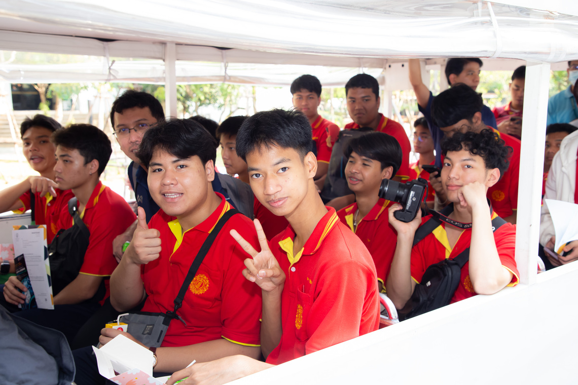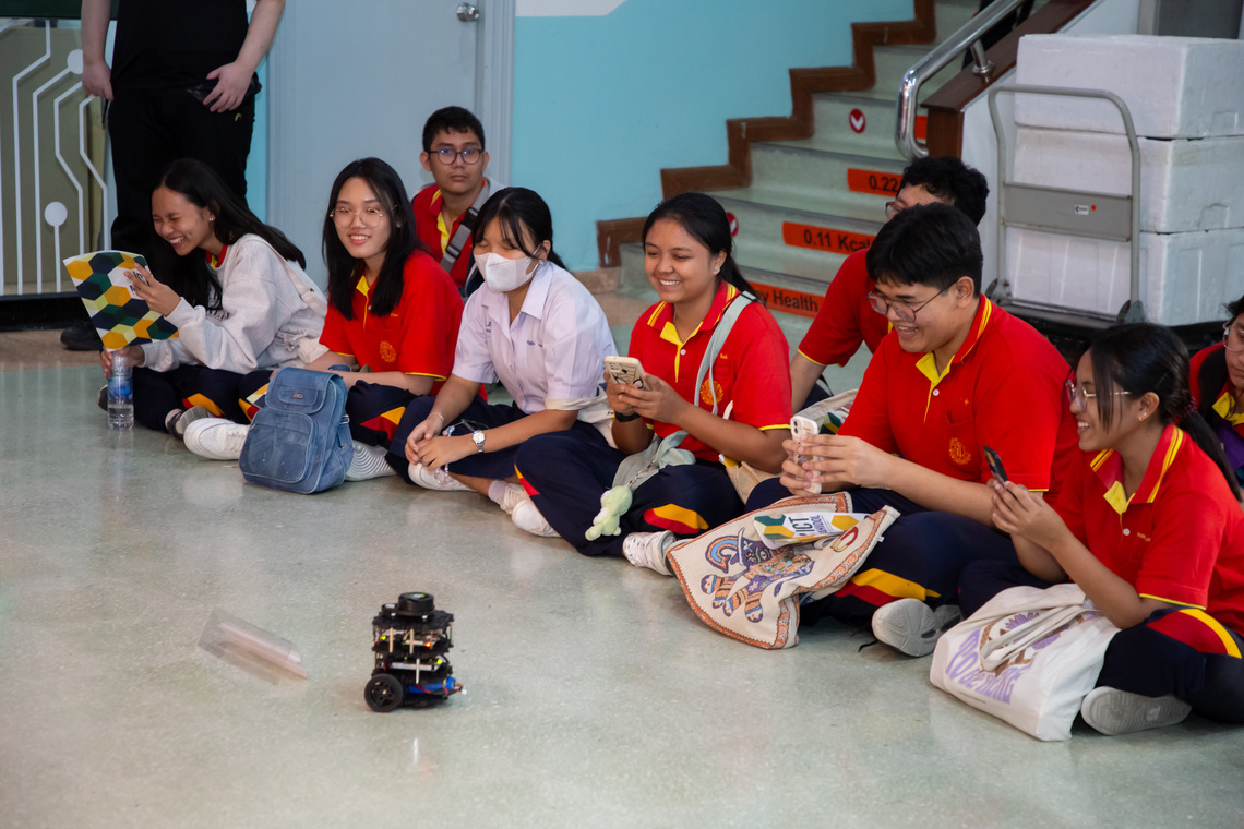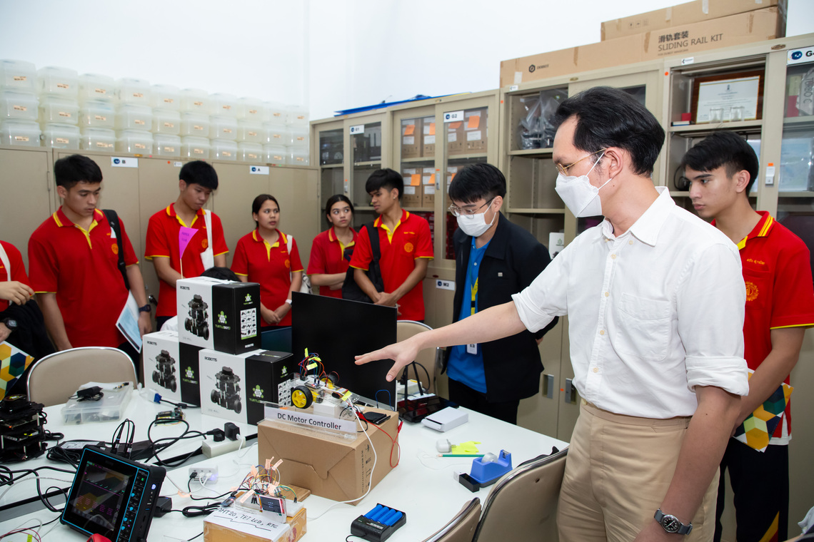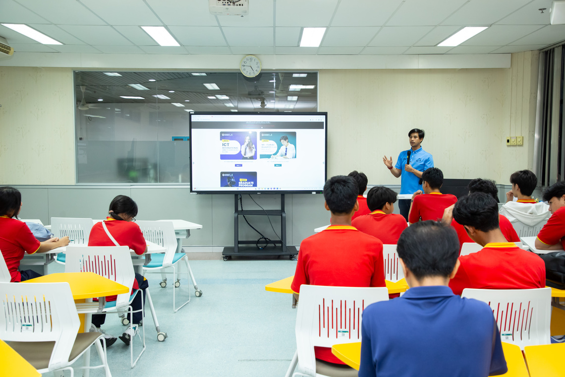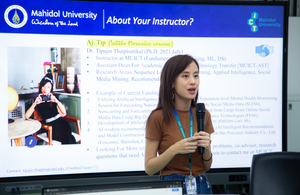 การอบรมในครั้งนี้ ยังได้รับเกียรติจาก ดร.ทิพาจินต์ ไทยพิสุทธิกุล ผู้ช่วยคณบดีฝ่ายบริการและถ่ายทอดเทคโนโลยี เป็นวิทยากรถ่ายทอดความรู้ในหัวข้อ “Basic with ChatGPT” จากนั้นเป็นกิจกรรมนั่งรถรางชมบรรยากาศโดยรอบมหาวิทยาลัยมหิดล วิทยาเขตศาลายา พร้อมเข้าชมอุทยานธรรมชาติวิทยาสิรีรุกขชาติ และพาชมห้องปฏิบัติการวิจัย สิ่งอำนวยความสะดวกด้านการเรียนของคณะ ICT อาทิ ห้องปฏิบัติการ IoT ห้องปฏิบัติการวิจัย Mahidol-Bremen Medical Informatics Research Unit (MIRU Lab) ห้องเรียน Smart Classroom และปิดท้ายด้วยการแนะนำหลักสูตรวิทยาศาสตรบัณฑิต สาขาวิชาเทคโนโลยีสารสนเทศและการสื่อสาร (ICT หลักสูตรนานาชาติ) และ สาขาวิชาวิทยาการและเทคโนโลยีดิจิทัล (DST หลักสูตรไทย) ณ ห้อง MultimedEx ชั้น 4 คณะ ICT มหาวิทยาลัยมหิดล ศาลายา