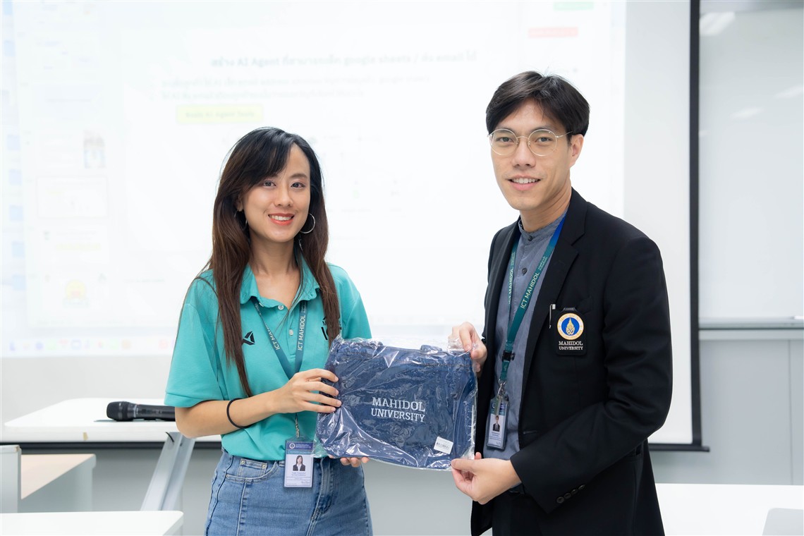 วันที่ 20 มิถุนายน 2568 คณะเทคโนโลยีสารสนเทศและการสื่อสาร มหาวิทยาลัยมหิดล (ICT Mahidol) จัดอบรมหัวข้อ “Generative AI for Workplace Excellence: พลิกโฉมทักษะการทำงานยุคใหม่” โดยได้รับเกียรติจาก ผศ.ดร.ทิพาจินต์ ไทยพิสุทธิกุล ผู้ช่วยคณบดีฝ่ายบริการวิชาการและถ่ายทอดเทคโนโลยี เป็นวิทยากรถ่ายทอดประสบการณ์ด้าน AI Literacy, Prompt Engineering Techniques ข้อควรระวังในการใช้งาน Generative AI Tools สำหรับการทำงาน Generative AI Tools สำหรับการนำเสนอ และ Future of AI in Workplace ให้แก่บุคลากรของคณะฯ โดยมี ดร.เพชร สัจจชลพันธ์ รองคณบดีฝ่ายบริหารและทรัพยากรบุคลากร ให้เกียรติกล่าวปิดการอบรม พร้อมมอบของที่ระลึกให้แก่วิทยากร ณ ห้อง IT204 คณะ ICT มหาวิทยาลัยมหิดล ศาลายา