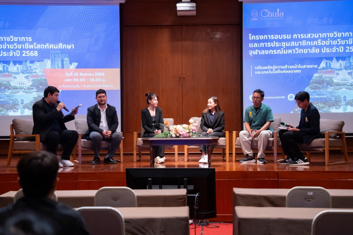 การเสวนาหัวข้อ “Talk to Inspire: เส้นทางจริงจากผู้ก้าวผ่านสู่สายเชี่ยวชาญ” เป็นกิจกรรมภายใต้ “การเสวนาทางวิชาการและการประชุมสมาชิกเครือข่ายวิชาชีพโสตทัศนศึกษา ประจำปี 2568 : เสริมพลังสู่ความก้าวหน้าในสายงานและเทคโนโลยีแห่งอนาคต” ซึ่งจัดขึ้นโดย คณะกรรมการเครือข่ายวิชาชีพโสตทัศนศึกษา จุฬาลงกรณ์มหาวิทยาลัย ร่วมกับ ฝ่ายบริการข้อมูลสารสนเทศ สำนักวิทยทรัพยากร จุฬาลงกรณ์มหาวิทยาลัย มีวัตถุประสงค์เพื่อเสริมสร้างความรู้ความเข้าใจเกี่ยวกับเส้นทางความก้าวหน้าของพนักงานมหาวิทยาลัยสายปฏิบัติการ สายเชี่ยวชาญ รวมทั้งเปิดโอกาสให้บุคลากรในสายงานโสตทัศนศึกษาได้แลกเปลี่ยนประสบการณ์ แนวทางการพัฒนาตนเอง และแสวงหาโอกาสในการเติบโตในสายวิชาชีพ ตลอดจนอัปเดตความรู้และแนวโน้มเทคโนโลยีด้านสื่อมัลติมีเดีย เทคโนโลยีการศึกษา