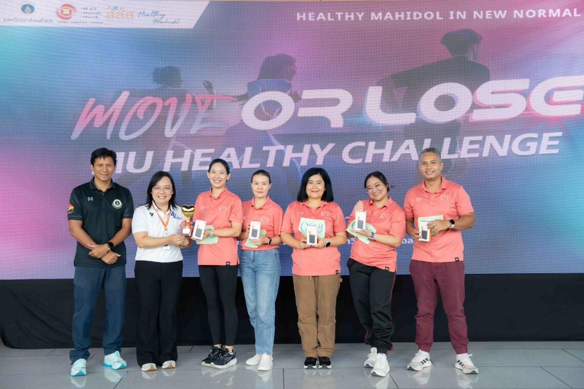 ในโอกาสนี้ คณะ ICT ได้ส่งบุคลากรเข้าร่วมการแข่งขัน MOVE OR LOSE MU HEALTHY CHALLENGE จำนวน 5 ท่าน ได้แก่ ดร.ปวิตรา เลี่ยมรักษ์ นายอิทธิพล มัคคัปผลานนท์ นางสาวกัญญศร สุดเสงี่ยม นางสาวเกศริน ถ้อยทัด และ นางสาวดวงหทัย แพงจิกรี ซึ่งสามารถคว้ารางวัลชนะเลิศ Healthy Challenger Award อันดับ 2 มาครอง