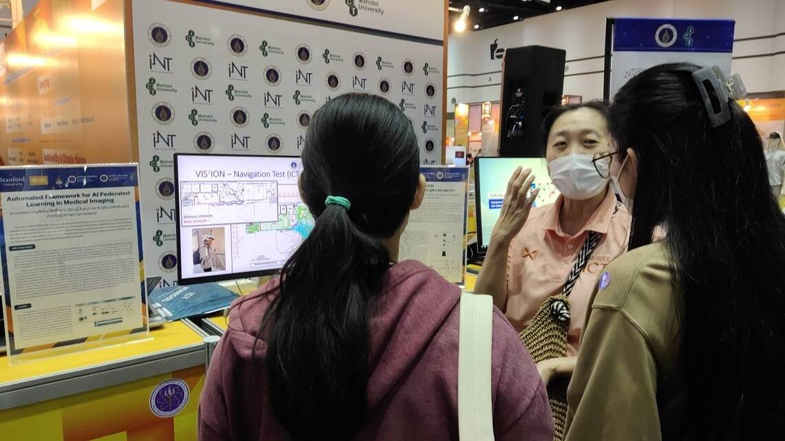 วันที่ 26 – 28 กรกฎาคม 2567 คณะเทคโนโลยีสารสนเทศและการสื่อสาร มหาวิทยาลัยมหิดล (ICT Mahidol) และสถาบันบริหารจัดการเทคโนโลยีและนวัตกรรม (iNT) ได้ร่วมจัดแสดงผลงานวิชาและนวัตกรรม ของมหาวิทยาลัยมหิดลในงาน “อว.แฟร์ : SCI POWER FOR FUTURE THAILAND” ซึ่งจัดขึ้นโดย กระทรวงการอุดมศึกษา วิทยาศาสตร์ วิจัยและนวัตกรรม (อว.) โดยมี อาจารย์ผกาพร เพ็งศาสตร์ รองคณบดีฝ่ายโครงสร้างพื้นฐานและเทคโนโลยี พร้อมด้วยบุคลากรและนักศึกษา ร่วมออกบูธแสดงผลงานวิชาการของคณะ ICT ในโซน D : SCIENCE for Exponential Growth (วิทย์เสริมแกร่งธุรกิจไทย) ณ ศูนย์ประชุมแห่งชาติสิริกิติ์ (QSNCC)