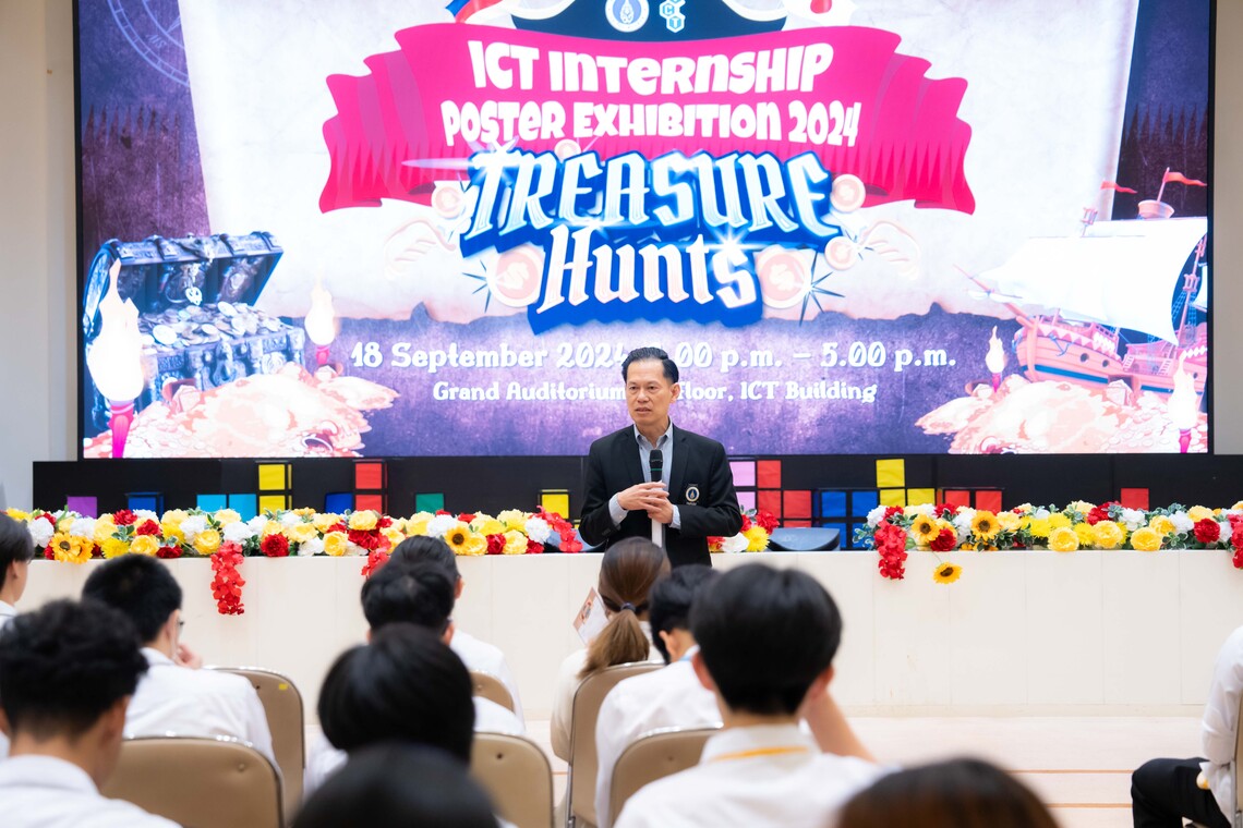 กิจกรรม “ICT Internship Poster Exhibition 2024: Treasure Hunts!” เป็นกิจกรรมที่คณะ ICT จัดขึ้น โดยมีวัตถุประสงค์เพื่อเปิดโอกาสให้นักศึกษาหลักสูตรวิทยาศาสตรบัณฑิต สาขาวิชาเทคโนโลยีสารสนเทศและการสื่อสาร (ICT หลักสูตรนานาชาติ) ได้จัดแสดงผลงานการฝึกประสบการณ์วิชาชีพด้าน ICT ทั้งในประเทศและต่างประเทศของตนเอง รวมทั้งเปิดโอกาสให้นักศึกษาจากทั้ง 2 หลักสูตร ได้แก่ สาขาวิชาเทคโนโลยีสารสนเทศและการสื่อสาร (ICT หลักสูตรนานาชาติ) และสาขาวิชาวิทยาการและเทคโนโลยีดิจิทัล (DST หลักสูตรไทย) ได้แลกเปลี่ยนเรียนรู้ประสบการณ์กับนักศึกษารุ่นพี่ และคณาจารย์ ผ่านกิจกรรมในรูปแบบ Treasure Hunts