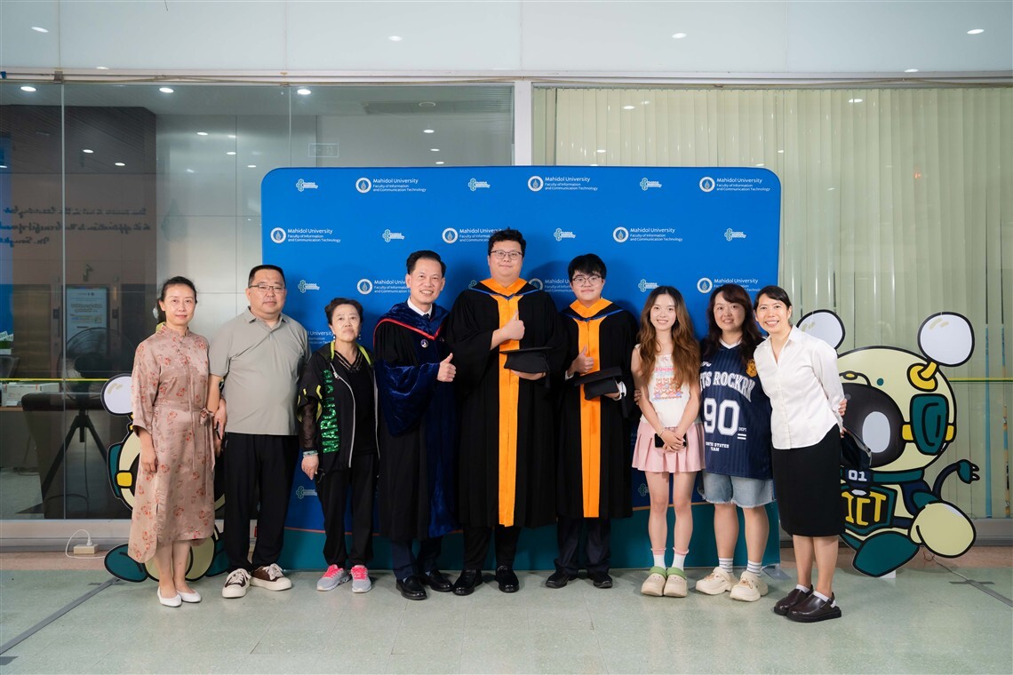 ในโอกาสนี้ ดร.พัฒนศักดิ์ มงคลวัฒน์ คณบดี พร้อมด้วยผู้บริหาร และคณาจารย์ ได้ร่วมแสดงความยินดีแก่บัณฑิตใหม่ของคณะฯ พร้อมถ่ายภาพหมู่ครุยวิทยฐานะ เพื่อเก็บเป็นภาพแห่งความประทับใจร่วมกัน ณ ห้อง Grand Auditorium Hall ชั้น 4 คณะเทคโนโลยีสารสนเทศและการสื่อสาร มหาวิทยาลัยมหิดล ศาลายา