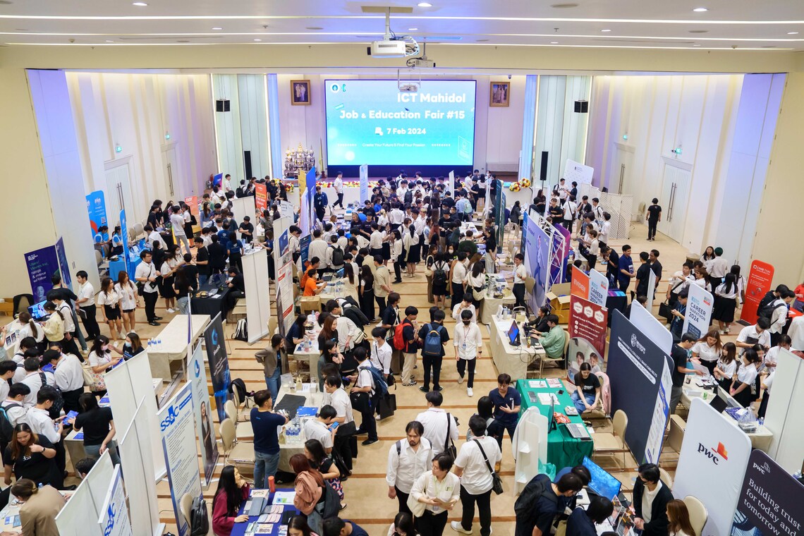 กิจกรรม ICT Mahidol Job and Education Fair #15 เป็นกิจกรรมที่คณะฯ จัดขึ้นอย่างต่อเนื่องเป็นประจำทุกปี โดยมีวัตถุประสงค์เพื่อส่งเสริมและสนับสนุนให้นักศึกษาของคณะฯ และบริษัทชั้นนำด้าน IT ได้มีโอกาสพบปะและแลกเปลี่ยนข้อมูลอันเป็นประโยชน์ซึ่งกันและกัน ไม่ว่าจะเป็นข้อมูลการสมัครงาน การรับสมัครนักศึกษาฝึกงาน และการศึกษาต่อในต่างประเทศ โดยในปีนี้ มีบริษัทให้ความสนใจเข้าร่วมเปิดบูธรับสมัครงานและนักศึกษาฝึกงาน และสถาบันการศึกษาร่วมเปิดบูธแนะแนวการศึกษาต่อต่างประเทศเป็นจำนวนกว่า 80 บูธ ซึ่งมีนักศึกษาของคณะฯ นักศึกษาจากคณะอื่นๆ ในมหาวิทยาลัยมหิดล และผู้สนใจทั่วไป เข้าร่วมงานกว่า 600 คน