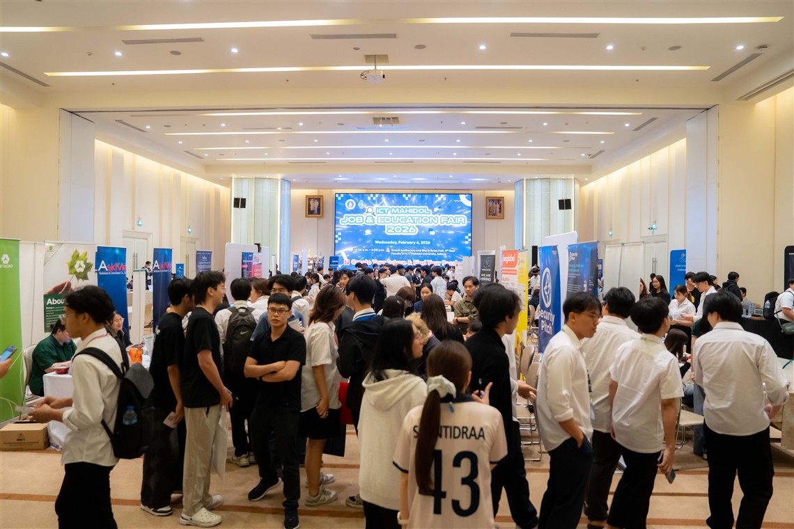 กิจกรรม ICT Mahidol Job and Education Fair 2026 เป็นกิจกรรมที่คณะฯ จัดขึ้นมาอย่างต่อเนื่องเป็นปีที่ 17 โดยมีวัตถุประสงค์เพื่อส่งเสริมให้นักศึกษาของคณะฯ ได้มีโอกาสพบปะและแลกเปลี่ยนข้อมูลกับบริษัทชั้นนำด้านเทคโนโลยีสารสนเทศ ไม่ว่าจะเป็นการสมัครงาน การรับนักศึกษาฝึกงาน รวมถึงคำแนะนำด้านการศึกษาต่อต่างประเทศ ซึ่งในครั้งนี้มีบริษัทและสถาบันการศึกษาเข้าร่วมเปิดบูธกว่า 70 บูธ โดยมีนักศึกษาของคณะฯ และนักศึกษาจากคณะต่างๆ ภายในมหาวิทยาลัยมหิดล ตลอดจนผู้สนใจทั่วไปเข้าร่วมงานเป็นจำนวนมาก ซึ่งสะท้อนถึงกระแสตอบรับและความสำเร็จของการจัดกิจกรรมได้เป็นอย่างดี