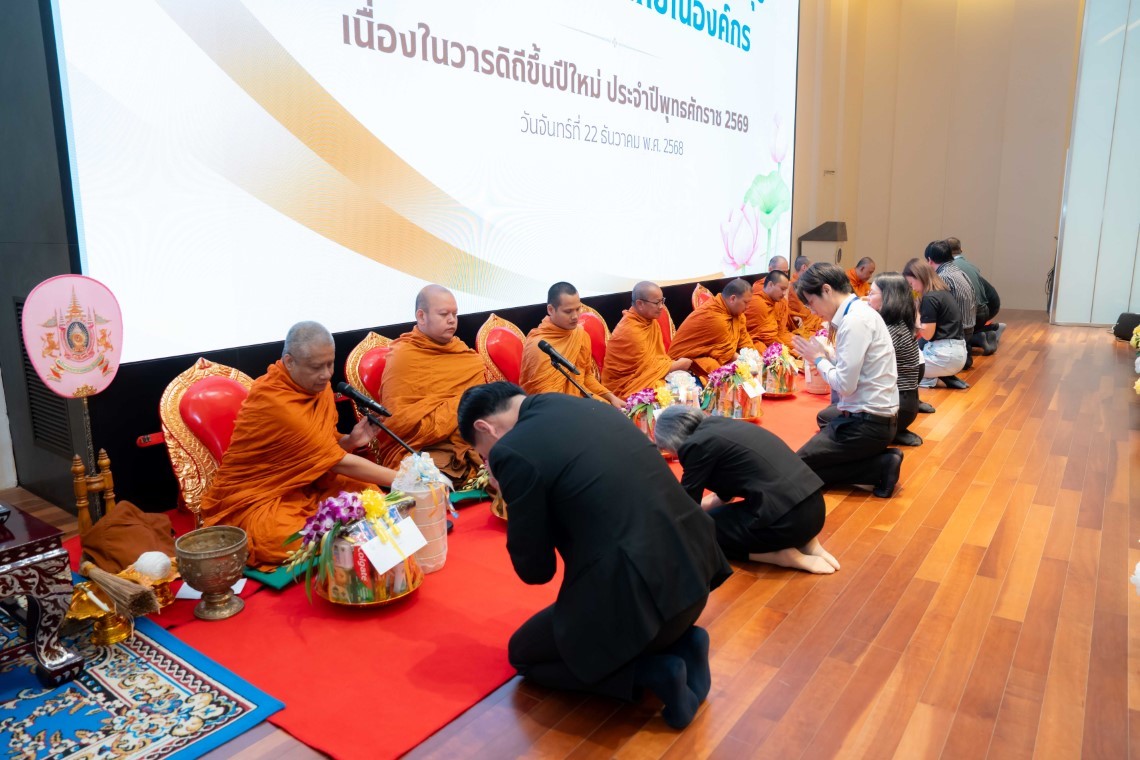 วันที่ 22 ธันวาคม 2568 คณะเทคโนโลยีสารสนเทศและการสื่อสาร มหาวิทยาลัยมหิดล (ICT Mahidol) จัด “กิจกรรมสักการะสิ่งศักดิ์สิทธิ์ ทำบุญใส่บาตร รับพรพระ เนื่องในวารดิถีขึ้นปีใหม่ พ.ศ. 2569” โดยได้รับเกียรติจาก ดร.พัฒนศักดิ์ มงคลวัฒน์ คณบดี นำทีมคณะผู้บริหาร คณาจารย์ และบุคลากร ร่วมสักการะสิ่งศักดิ์สิทธิ์ประจำคณะฯ และสิ่งศักดิ์สิทธิ์รอบมหาวิทยาลัย ได้แก่ ศาลเจ้าพ่อขุนทุ่ง พระพุทธมหิดลมงคลปัญญาญาณ พระราชานุสาวรีย์ สมเด็จพระมหิตลาธิเบศร อดุลยเดชวิกรม พระบรมราชชนก และพระพุทธมหิดลมงคลวรญาน มหาวิทยาลัยมหิดล จากนั้นเป็นพิธีเจริญพระพุทธมนต์ ใส่บาตรอาหารแห้ง ถวายภัตตาหารเพล และรับพรจากพระสงฆ์ เพื่อความเป็นสิริมงคล โดยมี ดร.พัฒนศักดิ์ มงคลวัฒน์ เป็นประธานจุดธูปเทียน บูชาพระรัตนตรัย ณ ห้อง Grand Auditorium คณะ ICT มหาวิทยาลัยมหิดล ศาลายา