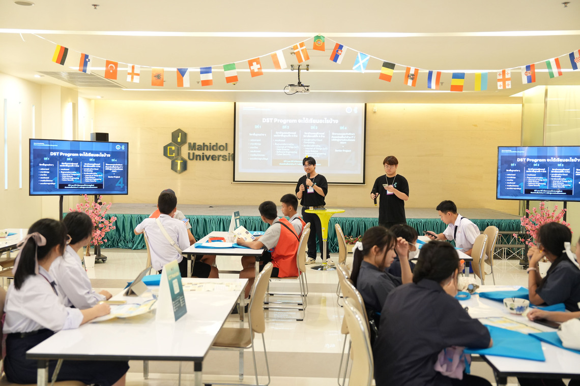 นอกจากนี้ คณะ ICT ยังได้ร่วมออกบูธนิทรรศการแนะแนวหลักสูตร ICT และ DST รวมทั้งได้เข้าร่วมบรรยายแนะแนวหลักสูตรการเรียนการสอน และข้อมูลการรับสมัครนักศึกษาใหม่ของคณะฯ ประจำปีการศึกษา 2568 ให้แก่ผู้ปกครอง นักเรียน และผู้สนใจ โดยได้รับเกียรติจาก ดร. พิสิฐ ไพรวัฒนา ผู้ช่วยคณบดีฝ่ายสื่อสารองค์กรและเทคโนโลยีสื่อ ร่วมแนะนำหลักสูตร ICT และ DST ณ ห้อง 217 – 219 อาคารสิริวิทยา คณะศิลปศาสตร์ มหาวิทยาลัยมหิดล