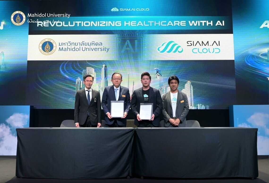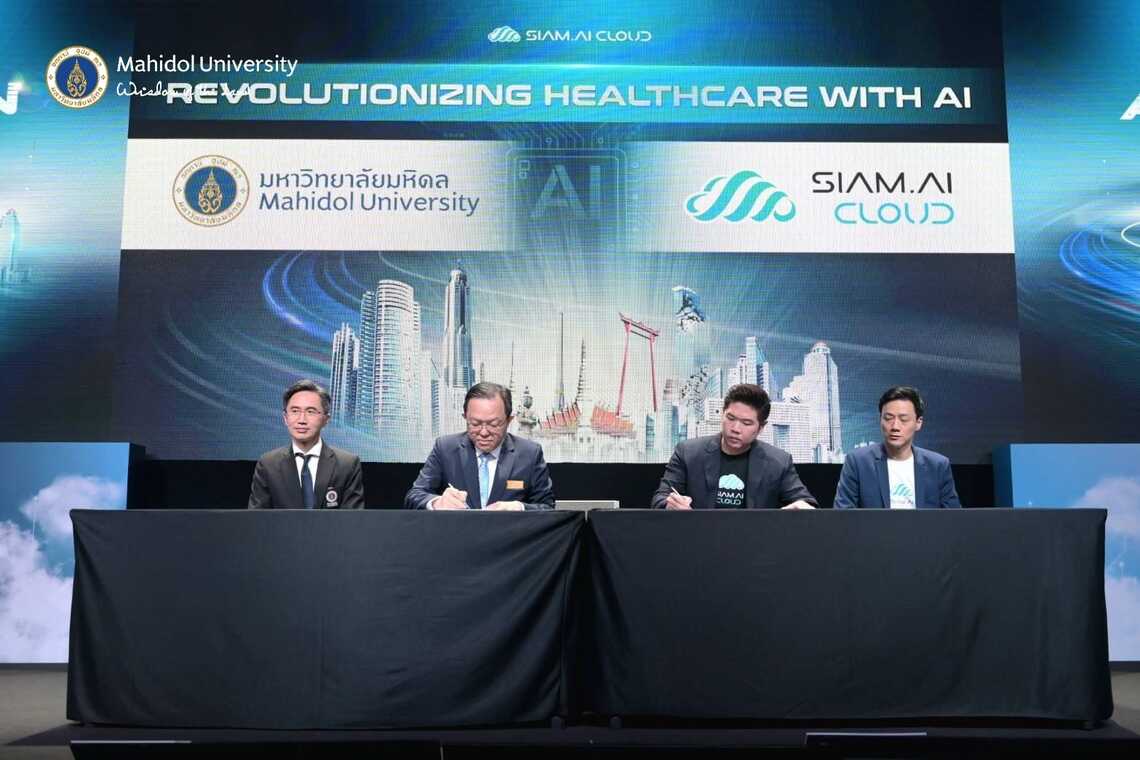 วันที่ 4 ธันวาคม 2567 ดร.พัฒนศักดิ์ มงคลวัฒน์ คณบดี คณะเทคโนโลยีสารสนเทศและการสื่อสาร มหาวิทยาลัยมหิดล (ICT Mahidol) เข้าร่วมงานด้านปัญญาประดิษฐ์ (Artificial Intelligence (AI)) “AI Vision for Thailand: “The First Step for Thailand Sovereign” ร่วมกับ ศาสตราจารย์ นายแพทย์ปิยะมิตร ศรีธรา อธิการบดีมหาวิทยาลัยมหิดล และคณะผู้บริหารมหาวิทยาลัยมหิดล พร้อมเป็นสักขีพยานในพิธีบันทึกข้อตกลงความร่วมมือ (MoU) เพื่อการขับเคลื่อนนวัตกรรมและเทคโนโลยีด้านการแพทย์ ระหว่างมหาวิทยาลัยมหิดล และ บริษัท สยาม เอไอ คอร์เปอเรชั่น จำกัด (SIAM AI Cloud) โดยได้รับเกียรติจาก นายแพทย์เชิดชัย นพมณีจำรัสเลิศ รองอธิการบดีฝ่ายสารสนเทศและดิจิทัลทรานส์ฟอร์เมชัน มหาวิทยาลัยมหิดล พร้อมด้วย คุณรัตนพล วงศ์นภาจันทร์ ประธานเจ้าหน้าที่บริหาร บริษัท สยาม เอไอ คอร์เปอเรชั่น จำกัด เป็นผู้ลงนามในครั้งนี้ โดยมี รองศาสตราจารย์ ดร.ยศชนัน วงศ์สวัสดิ์ รองอธิการบดีฝ่ายวิจัย รองศาสตราจารย์ ดร.วิชิตา รักธรรม รองอธิการบดีฝ่ายสื่อสารองค์กรและภาพลักษณ์ ผู้ช่วยศาสตราจารย์ ดร.นริศ หนูหอม ผู้ช่วยอธิการบดีฝ่ายสารสนเทศและดิจิทัลทรานส์ฟอร์เมชัน ศาสตราจารย์คลินิก นายแพทย์อาทิตย์ อังกานนท์ คณบดีคณะแพทยศาสตร์โรงพยาบาล และผู้แทนจาก บริษัท สยาม เอไอ คอร์เปอเรชั่น จำกัด เข้าร่วมเป็นสักขีพยานในพิธีฯ ณ โรงแรม พาร์ค ไฮแอท กรุงเทพฯ